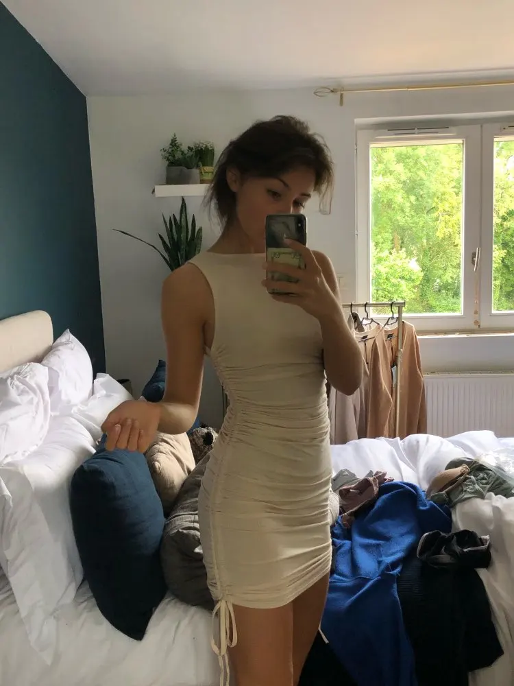 The dress came 100% as in the photo of the store 10 days before ekb. Packaging in a couple of bags and marriage is not found! I'm happy as a Elephant)))) on my link there are many dresses of a variety of colors and a small size range. The dress is bright and uplifting. Sewn from a mixed fabric with 30% cotton addition, the birochka on the dress confirmed this composition. The fabric is very pleasant to the body, light, airy and very soft. Linen dress slightly shines through, so I chose the size larger than my usual, so that the drapery from the screed turned out more voluminous! Draped fabric on the sides of the dress looks just like)))) The seams are even. No marriage found. On the height of 164 cm and 84-60-89 I chose L. The dress is loose, it was necessary to take a smaller size! The "Raisin" of this dress is a drapery on the sides! It is super feminine and attractive! The length is good, this is the same mini dress without pricks. I do not feel hot in it, there is no feeling of choking skin, the skin does not sweat. Perfect for summer!