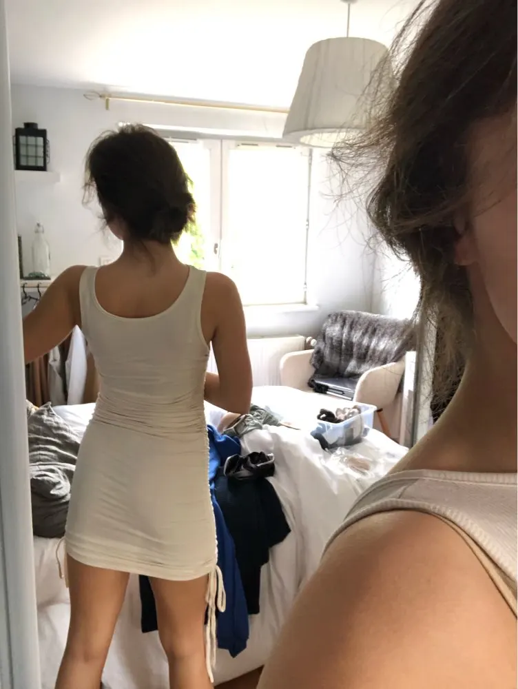 Very thin fabric, everything shines through. I think the figure should be model for such a dress