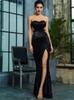 Party Long Dress Sequins Black Bra Open Back Pleated Slim Dress