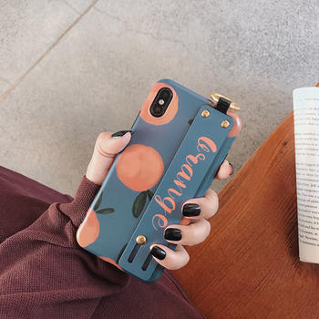 FREE SHIPPING Retro Painting Orange Phone Case For iphone X 8 7 6S 6 plus Case For iphone Xr XS Max Back Cover Fashion Wrist Strap Cases Capa JKP2015