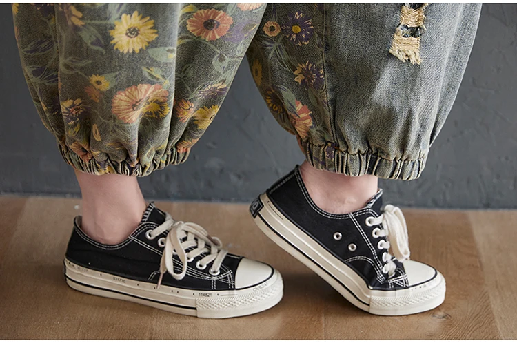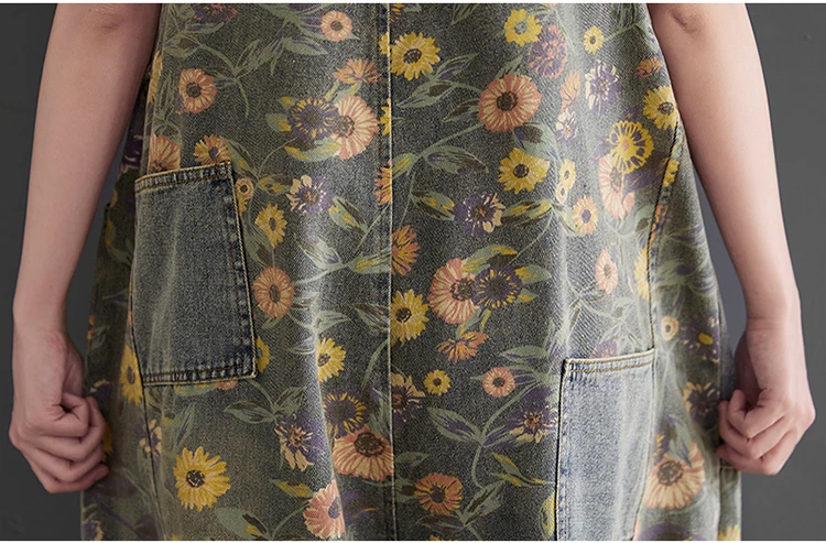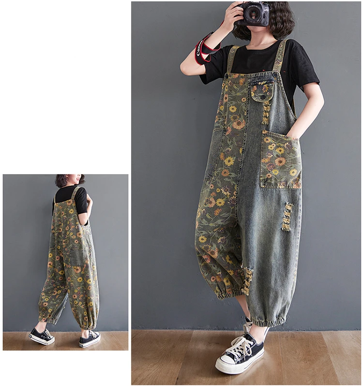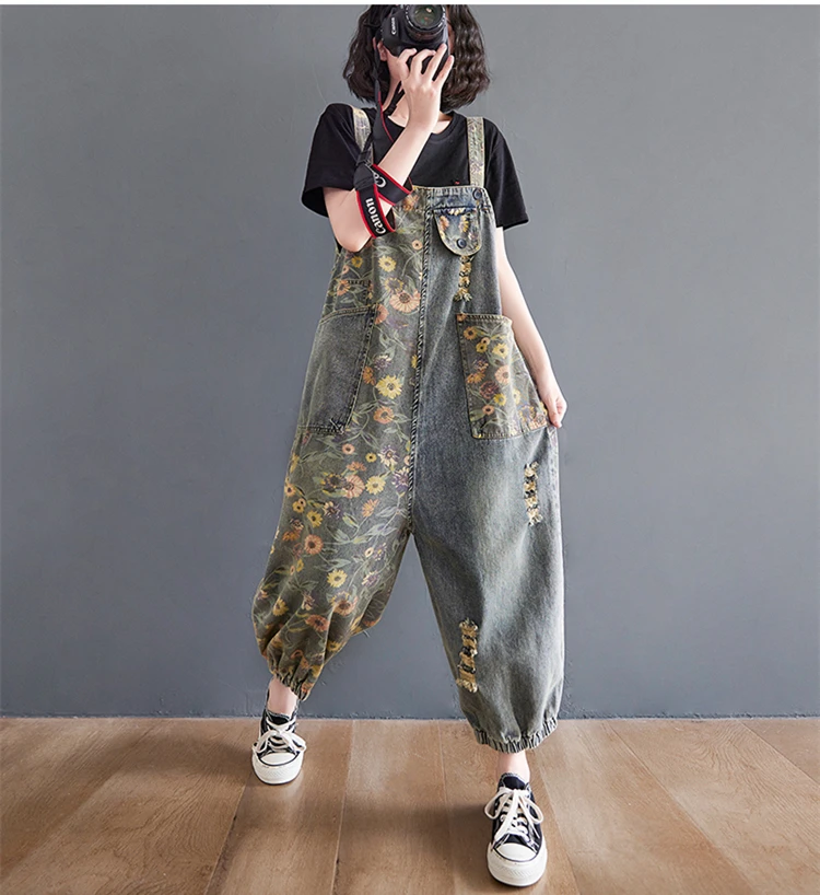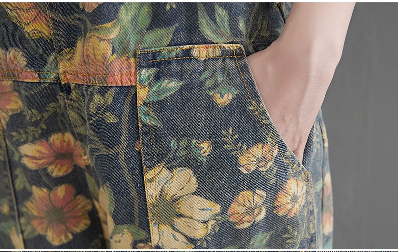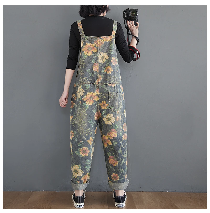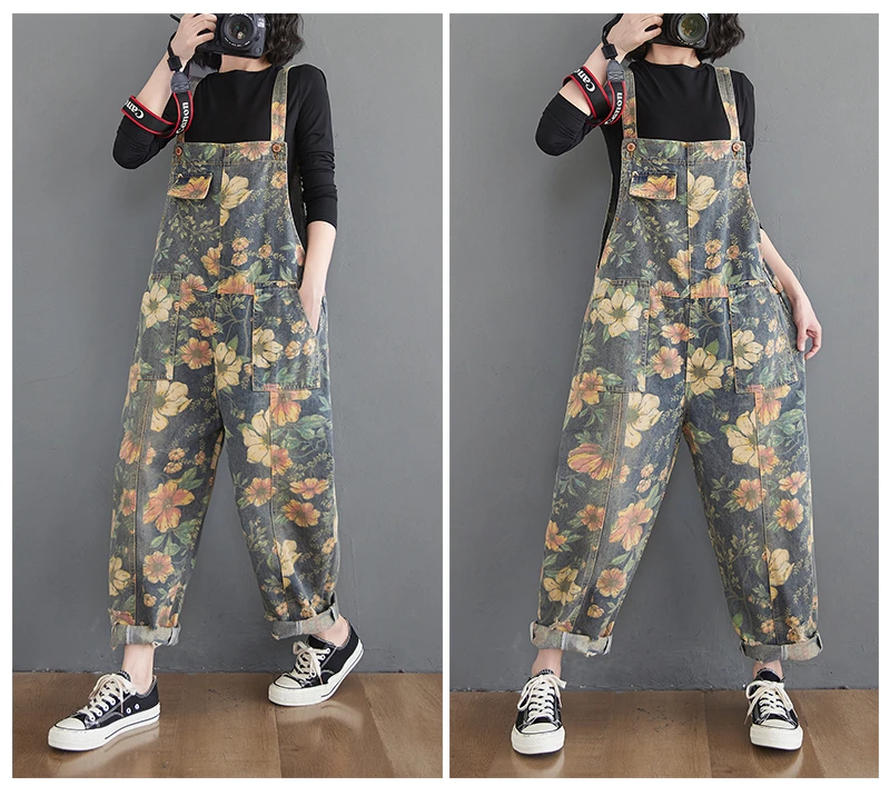 Plus Size Casual Loose Denim Jumpsuit for Women Floral Print Wide Leg Overalls for Spring and Autumn JKP7228