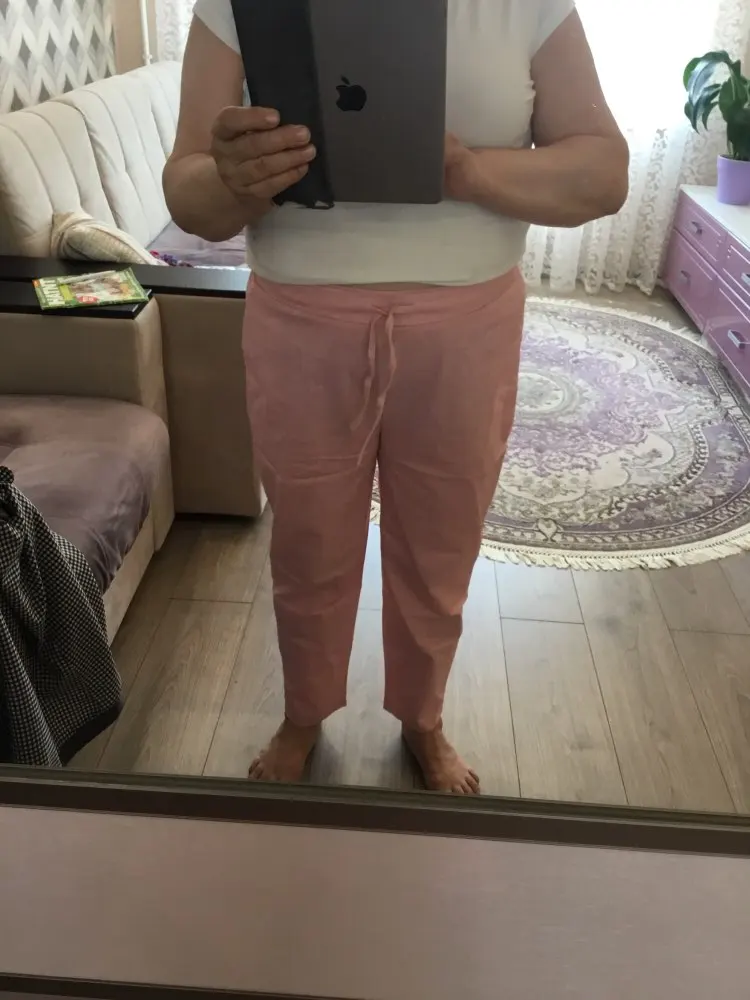 Штанишки классные,летние,52 размер, просторные, приятные.Ткань лëн.Заказ прибыл за три недели. Продавец умничка. Рекомендую: "Али баба! "