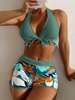 Plus Size High Waist Bikini Set for Women Leaf Print Sexy Two Piece Bathing Suit for Summer Beach JKP7243