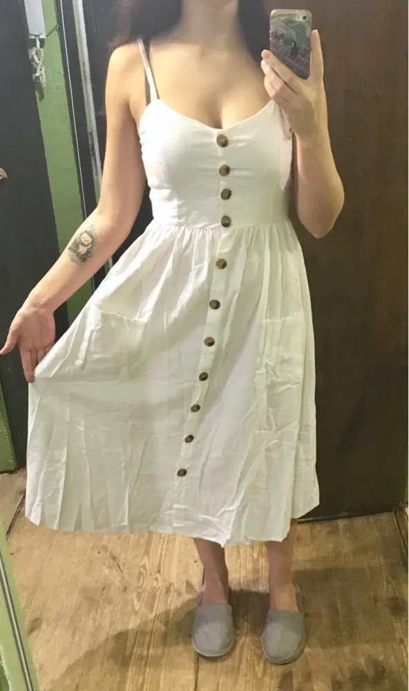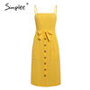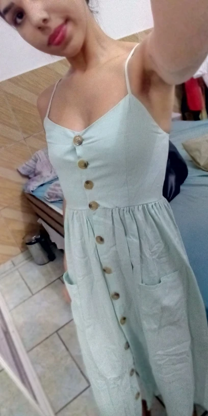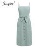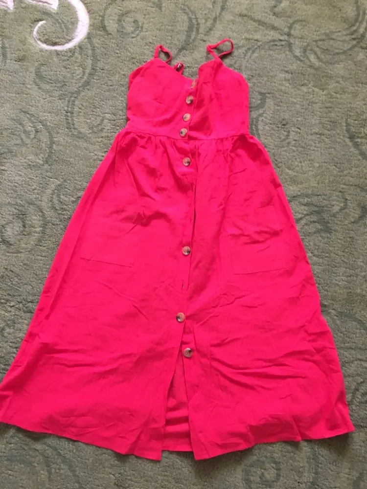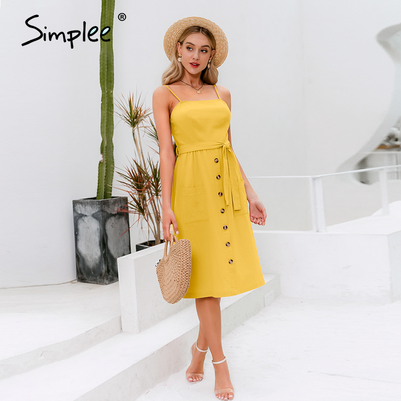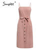 Linen / Spaghetti strap / Buttons / Beach / Holiday / Pocket / Midi Dress