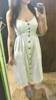 Matches the image. Beautiful little summer dress. Fast delivery. A little transparent on the bottom of the dress.