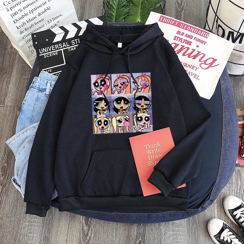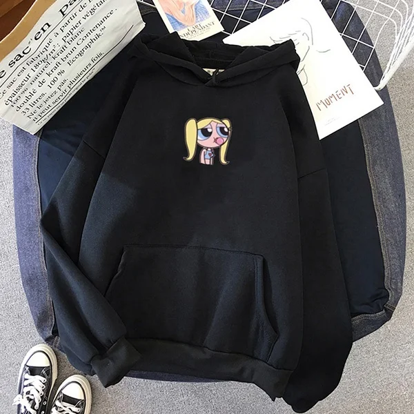 Power Puff Girl Cartoon Print Hoodies Harajuku Kawaii Korean Style