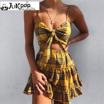 FREE SHIPPING Plaid Bow Tie Two Pieces Set JKP1378