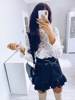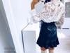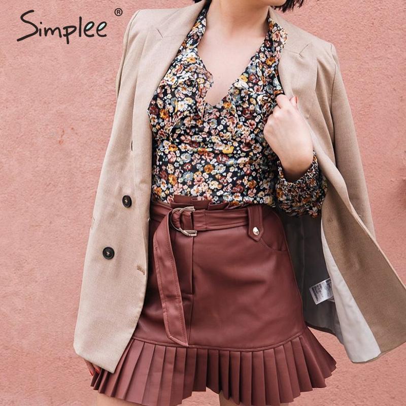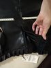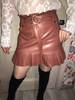PU Leather Skirt Ruffled High Waist Sash Belt Fashion Outfit Mini Skirt JKP3832
