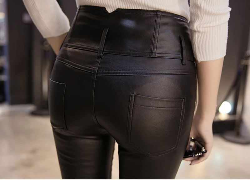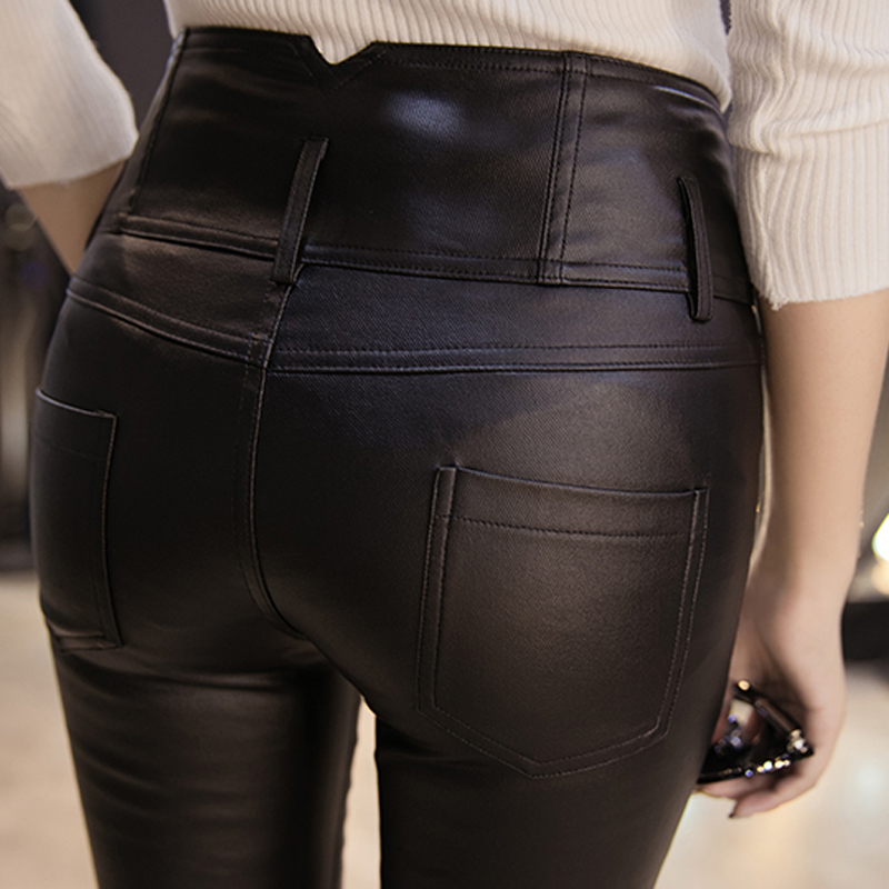PU Leather Velvet Trousers Elastic Pencil Skinny pants Winter Fashion Outfits Pants JKP3866