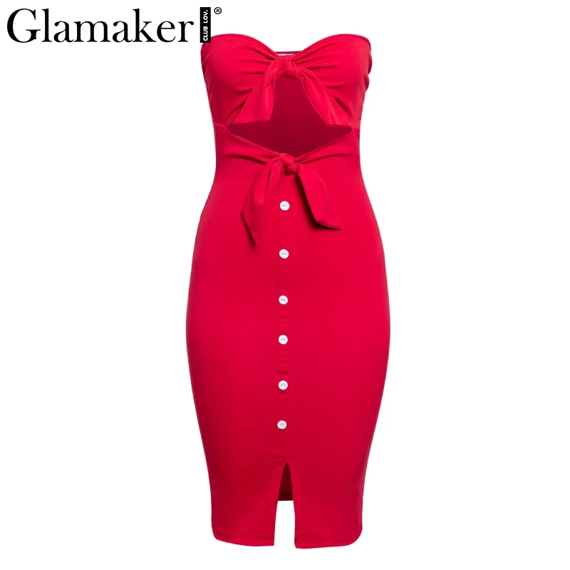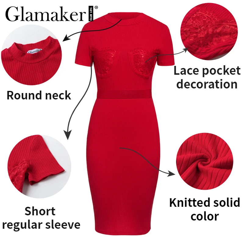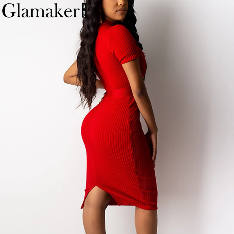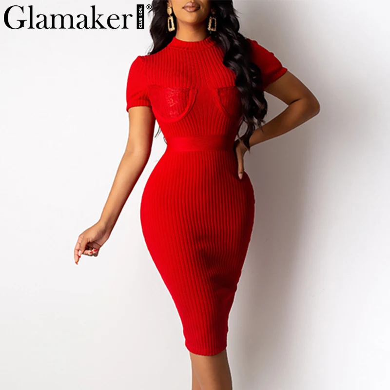 Red Dress Knitted Bodycon Elegant black Midi Dress JKP3892