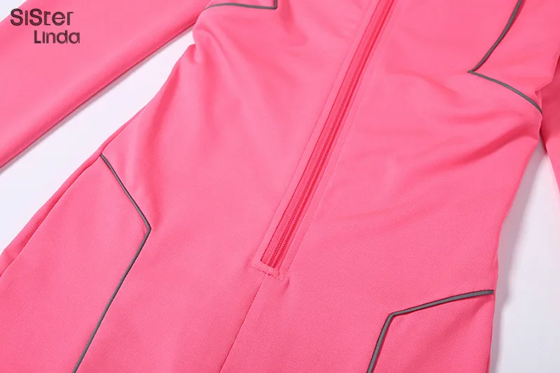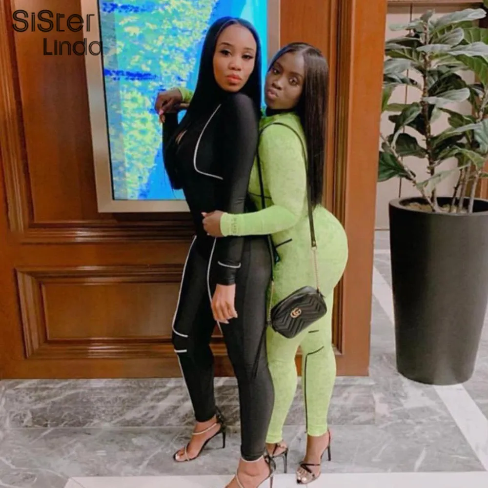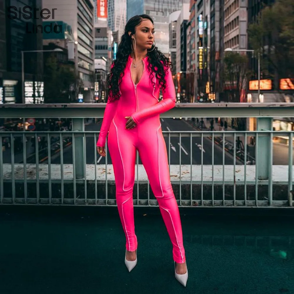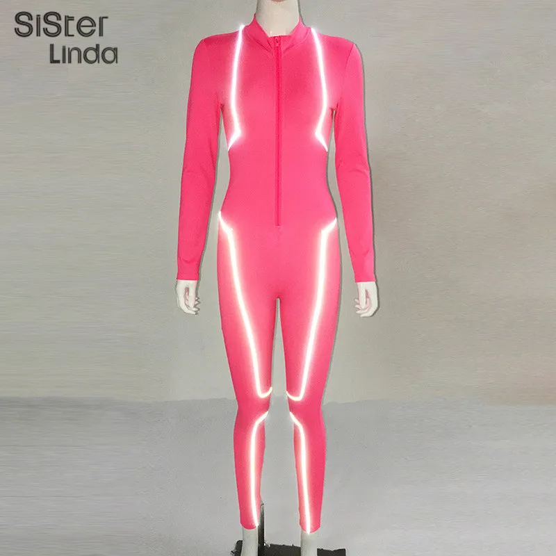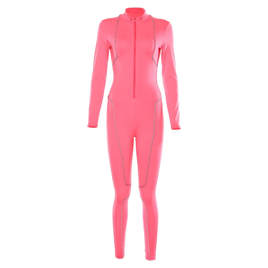 Reflective Jumpsuits Zipper Turtleneck Patchwork Outfits