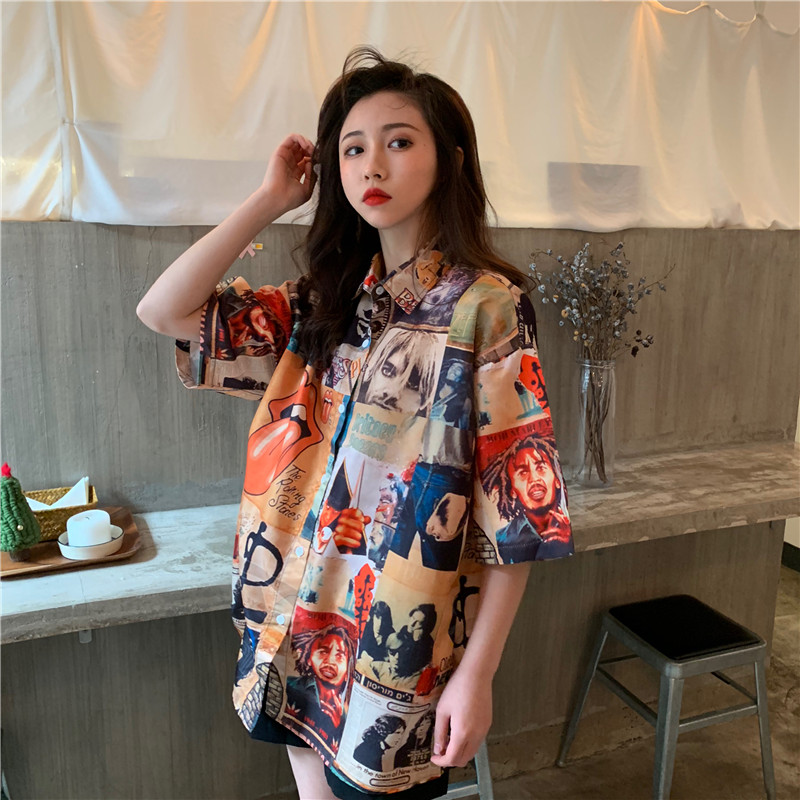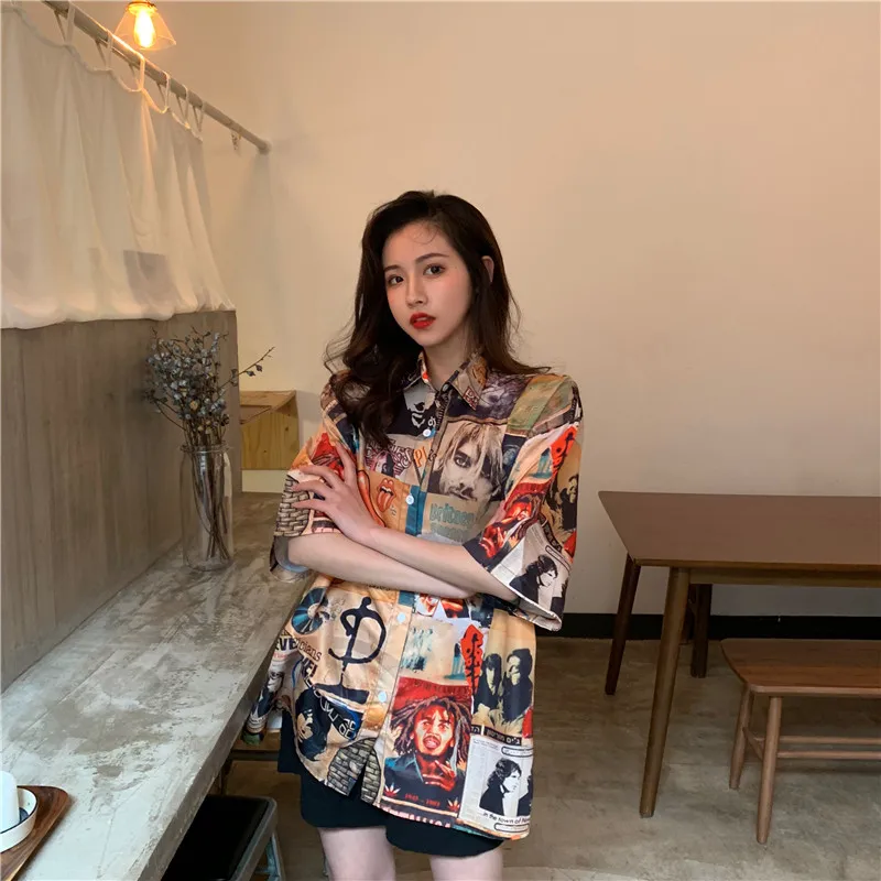 Retro Vintage French Blouse Summer Korean-style Hip Hop