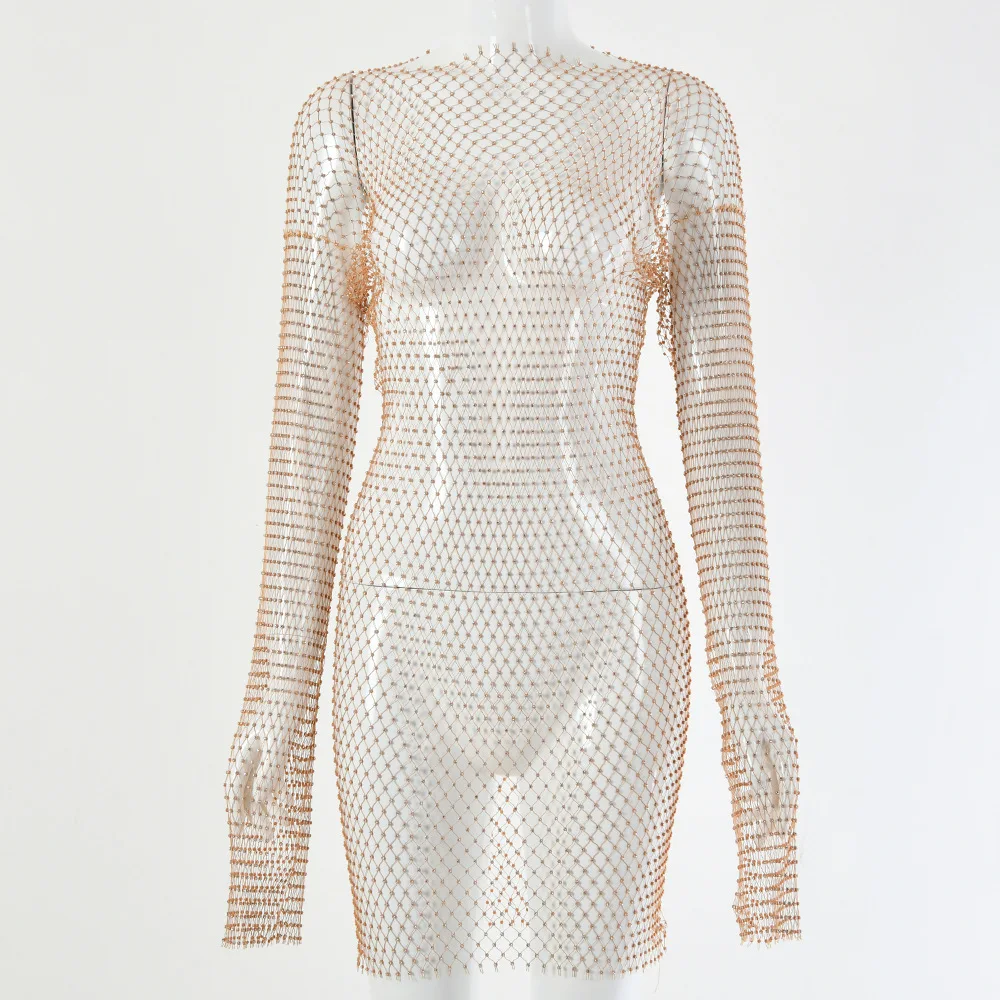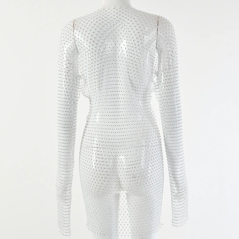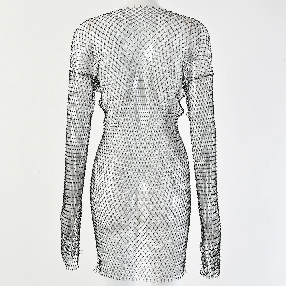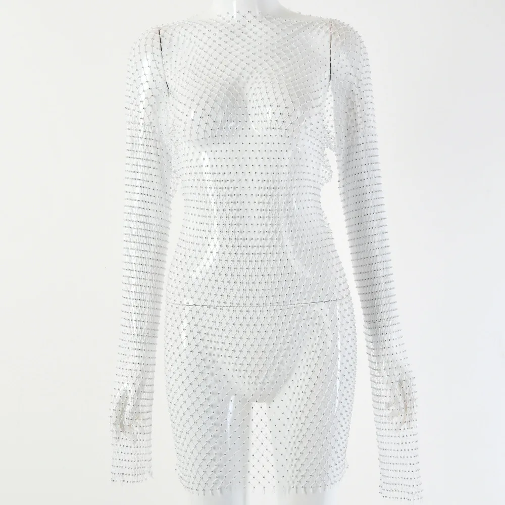 Rhinestone Mesh Dress Long Sleeve New Crystal Diamond Bodycon Dress JKP4844
