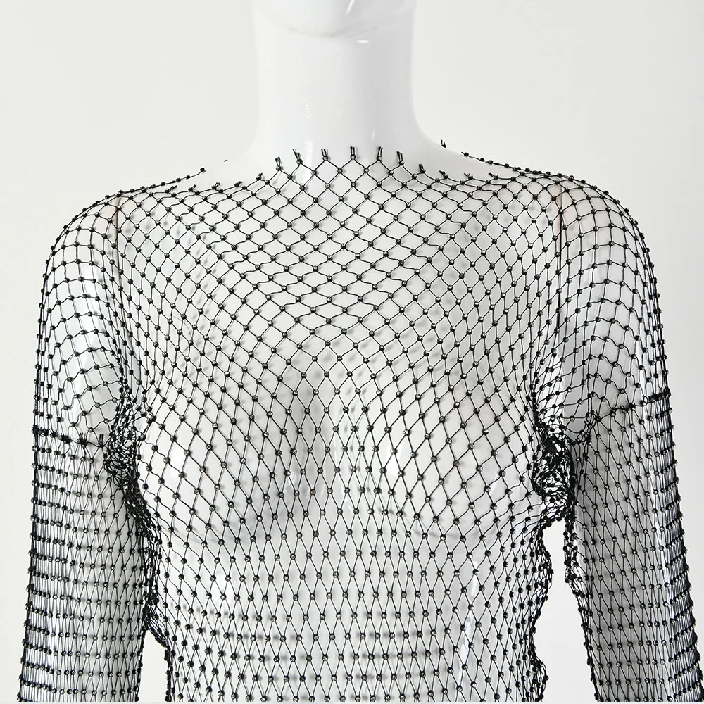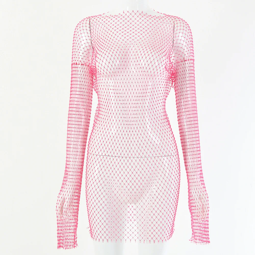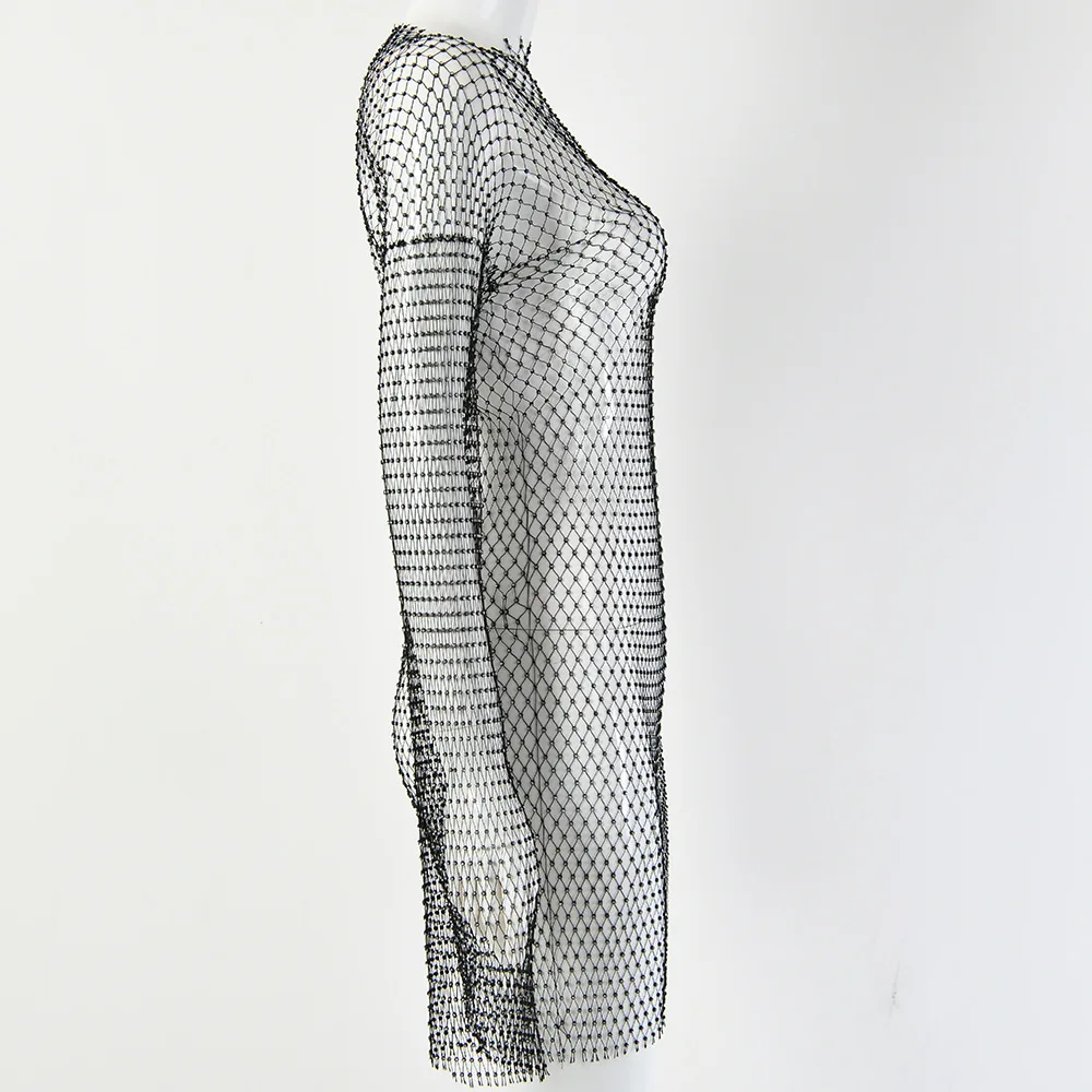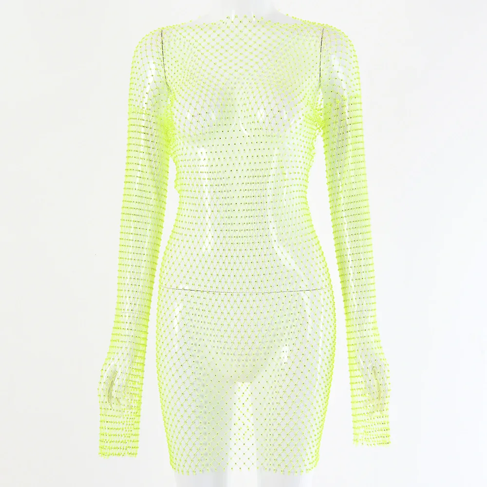 Rhinestone Mesh Dress Long Sleeve New Crystal Diamond Bodycon Dress JKP4844