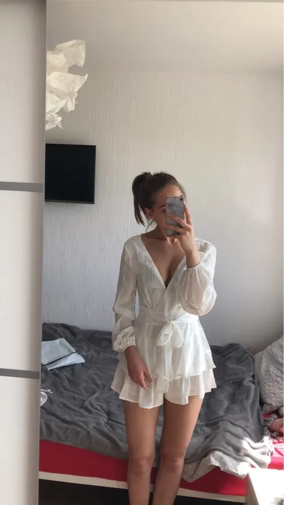 Incredibly beautiful overalls! Just looks amazing on the figure. My parameters are 88-65-88, height 167 cm. I took the size s. The quality of the overalls is very good, pleasant to the touch fabric. Shines not strongly and only from above. Although polyester, it is not hot! Everything is blown. Very flying, flowing silhouette. Fastened with a zipper at the back. In front of the chest there is a button, you can unfasten to make a deep neckline. At the waist is a ribbon that is tied behind the bow. I recommend the quality is just super. Of course, this option is not for the city, more for vacation, tk overalls are short.