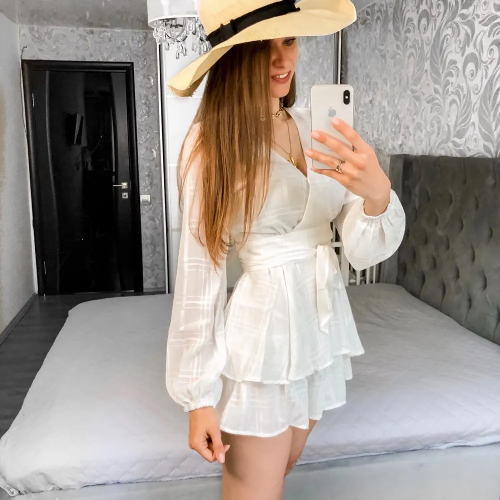 FREE SHIPPING Rompers Womens Jumpsuit V Neck Long Sleeve Casual Romper Women Elegant Jumpsuit Short Playsuit Combinaison Femme Overalls Shorts JKP1826