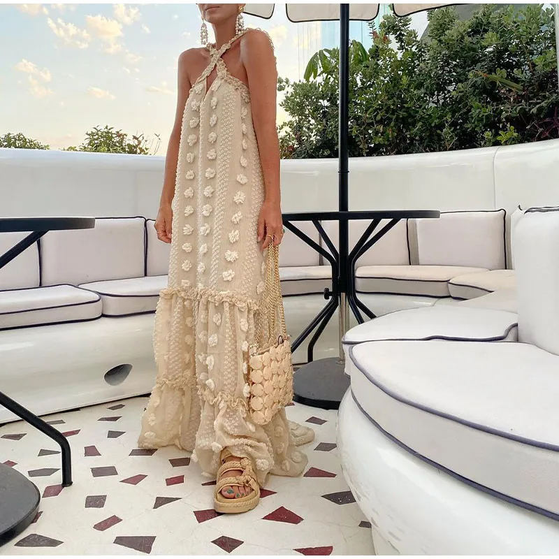 Ruffle Beach Long Dress Sleeveless Halter Maxi Summer Dresses For Women JKP6140
