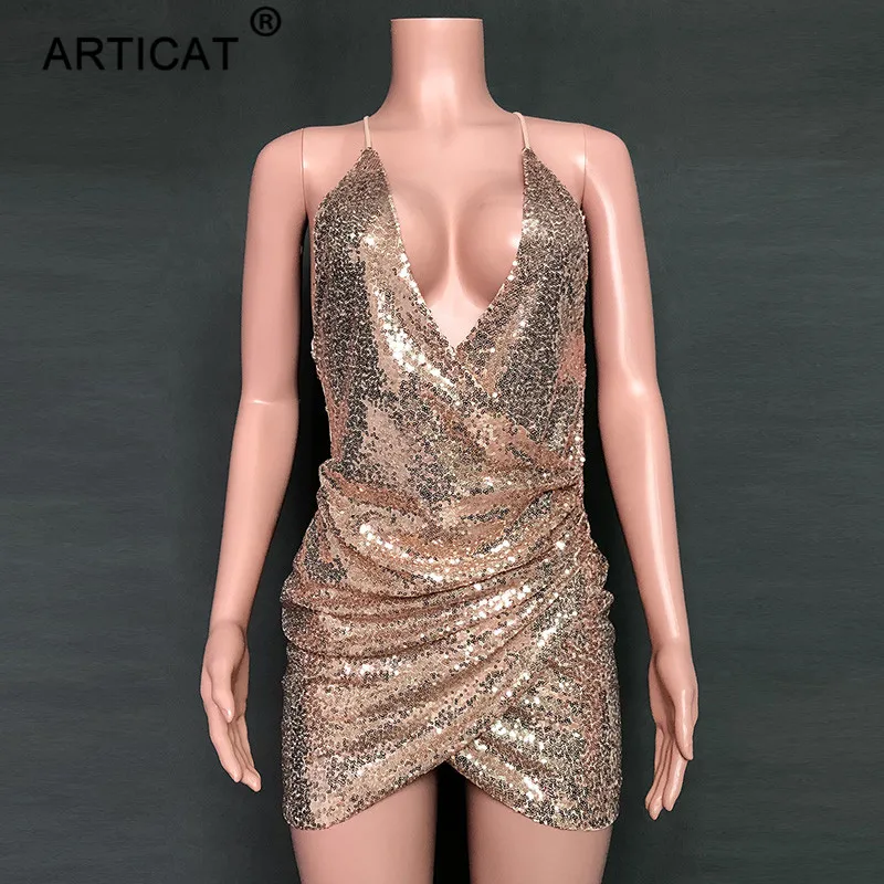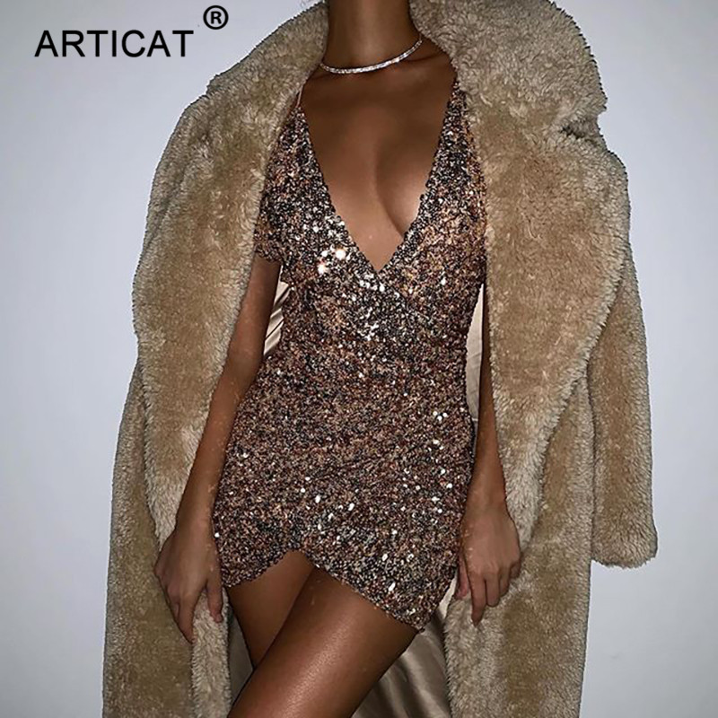 Sequin Dress Solid Golden Bodycon Elegant Club Party Dress