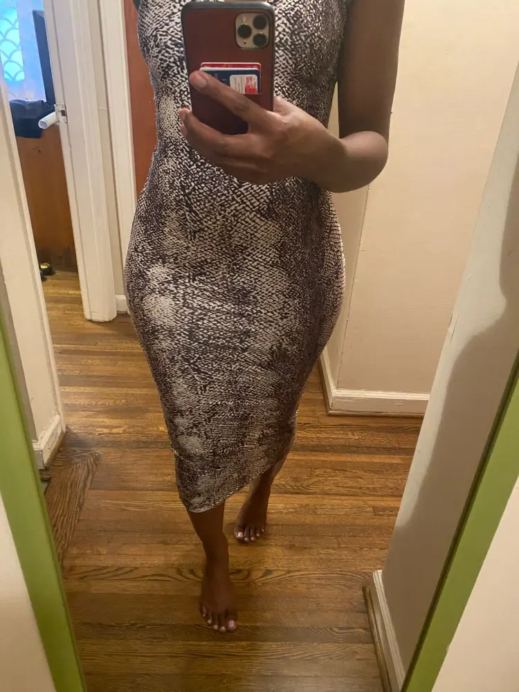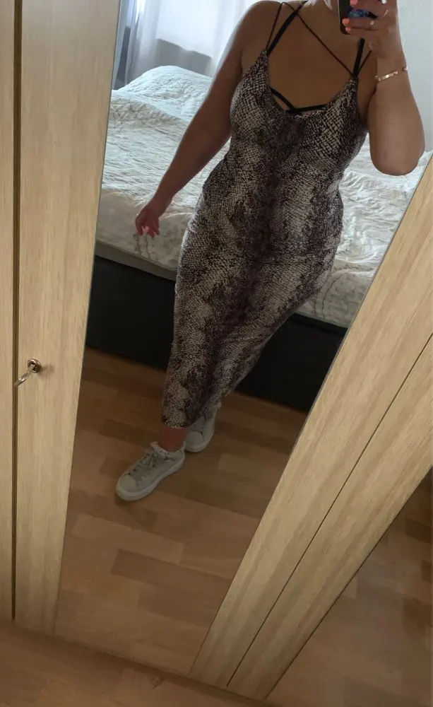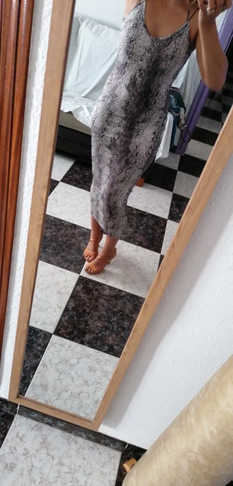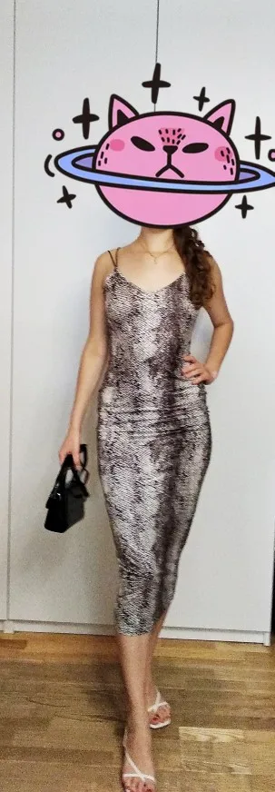 Love the dress, a bit thinner than the snake print but gorgeous.