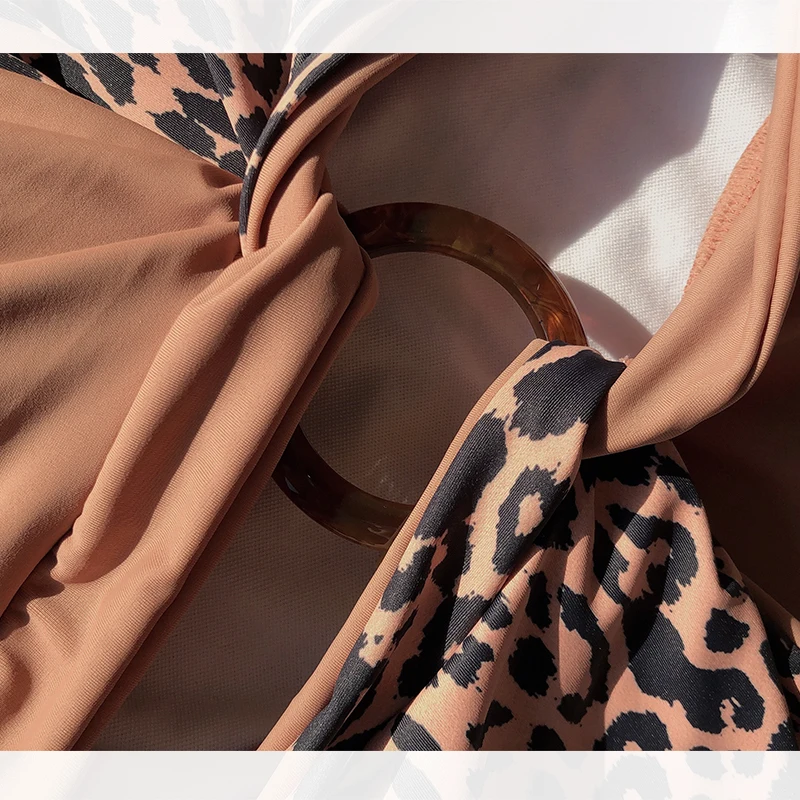 Sexy parchwork leopard bikini 2020 ring bather swimsuit female Push up bathing suit high waist swimwear women high cut monokini JKP3717
