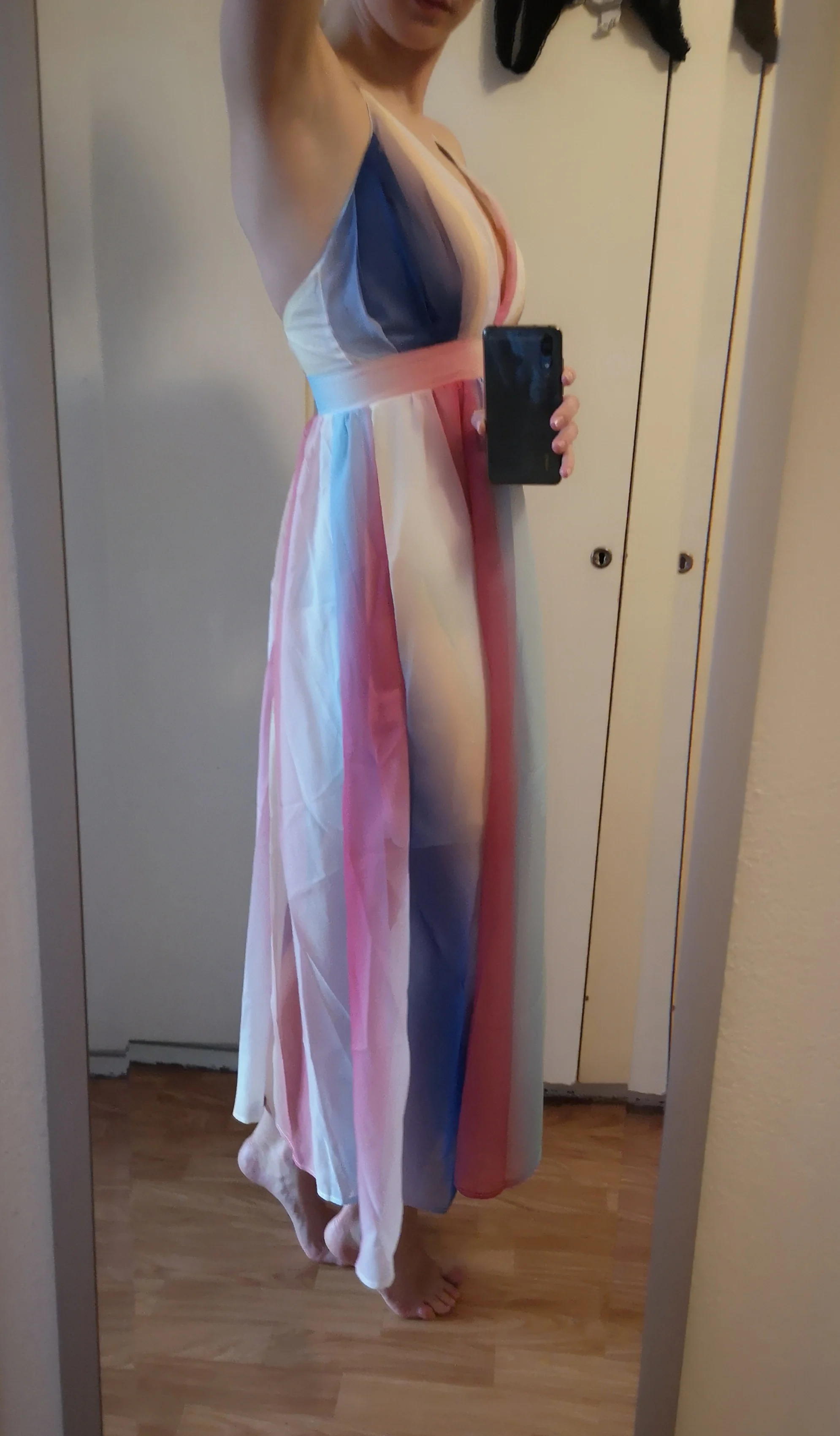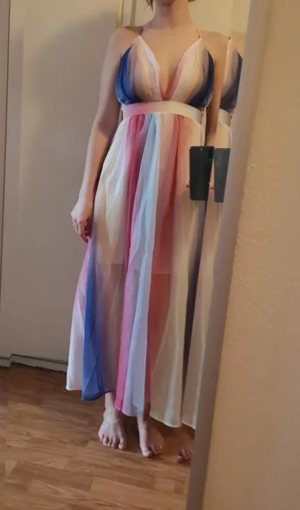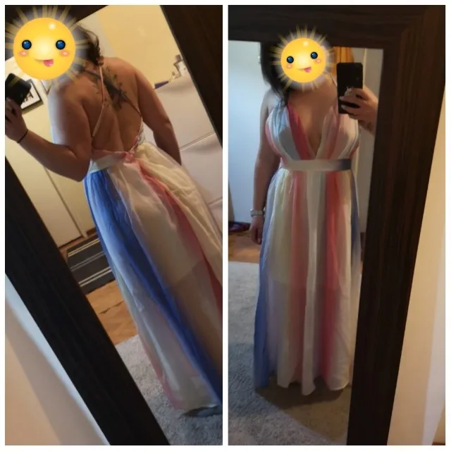 Goods came quickly (14 days to the Czech Republic). I am 167 cm tall. The length of the dress is fine, the colors are nice. Waist according to size chart.