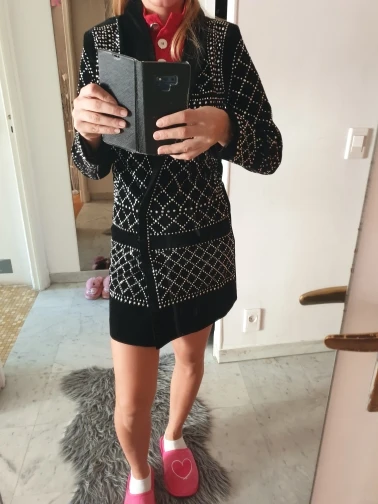Super stylish and versatile thing. You want as a dress (for my height is not short), but you want to dress like a jacket. On the parameters 89-67-93, the growth of 177 all came perfectly. Fabric-velvet, all rivets are in place, i hope not to peel off after washing)) of the minuses perhaps a very strong smell. Delivery to spb mega fast, about 1,5 weeks. I love this store. I recommend to buy.