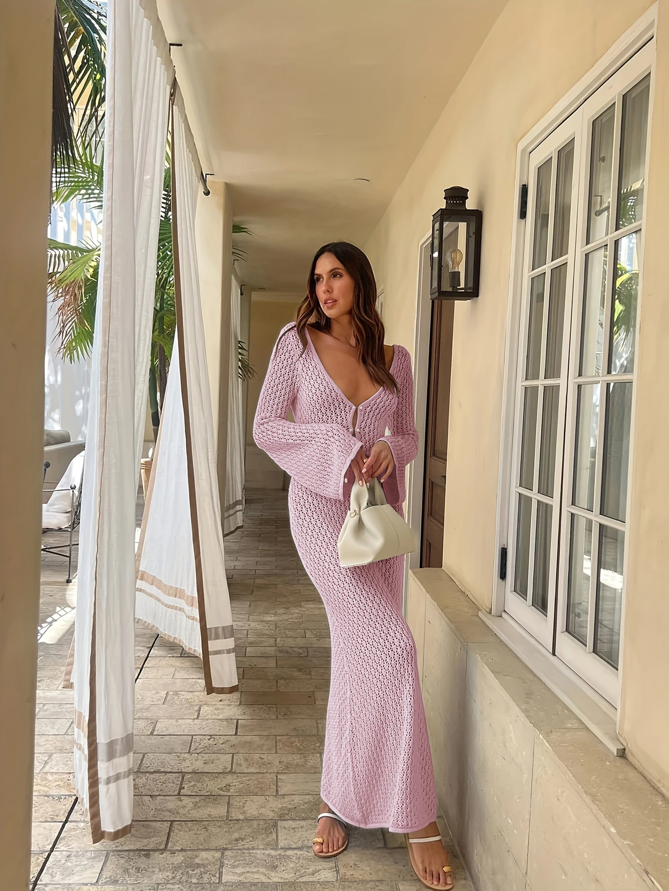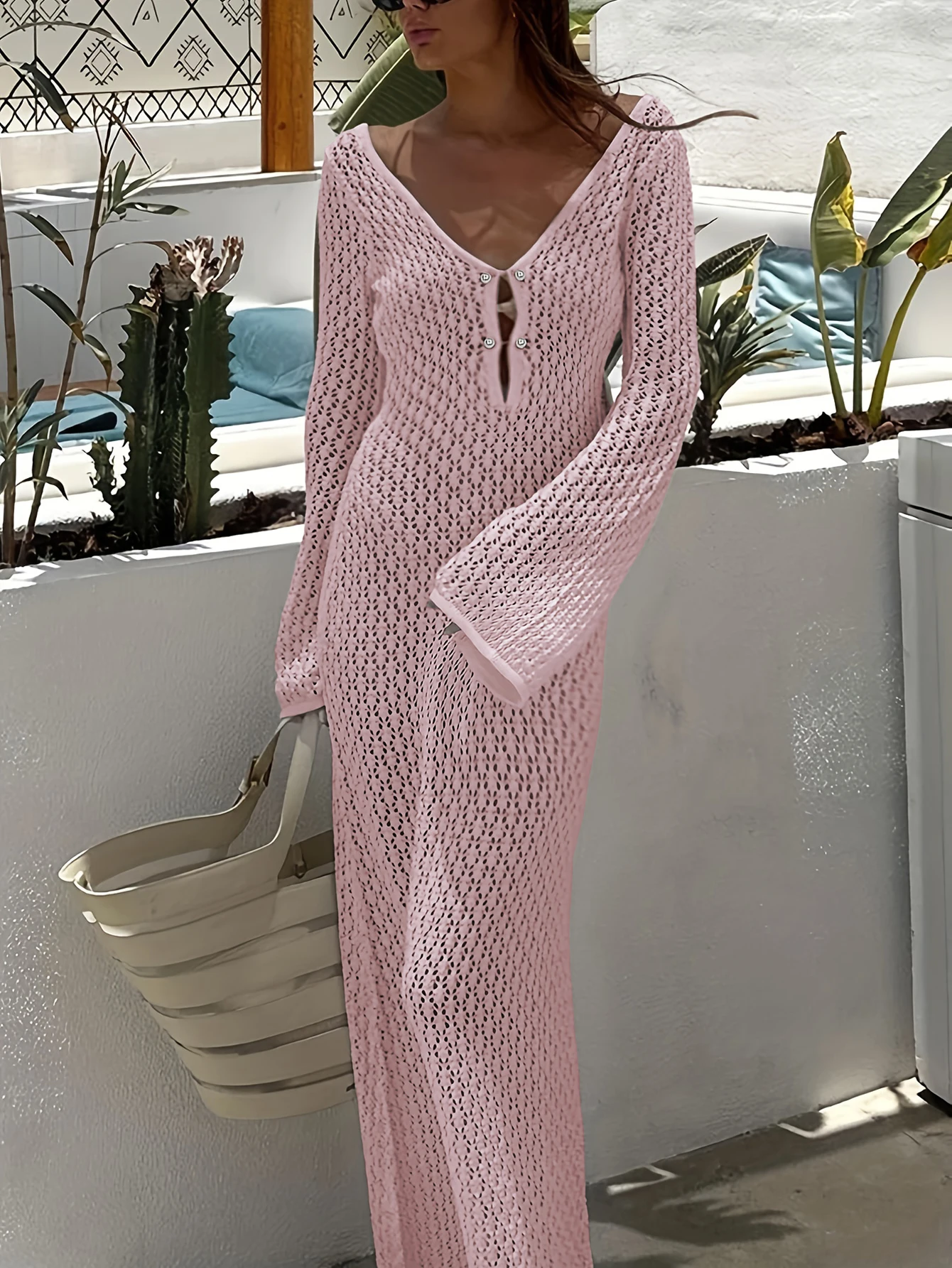 Sexy Women Long Knit Sleeve Cover up Beach Knitwear JKP7372