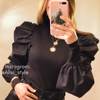 Shirt Long Sleeve Puff Patchwork Fashion Elegant Streetwear JKP3882