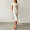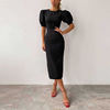 Simple Elegant Party Dress High Waist Puff Sleeve JKP4692