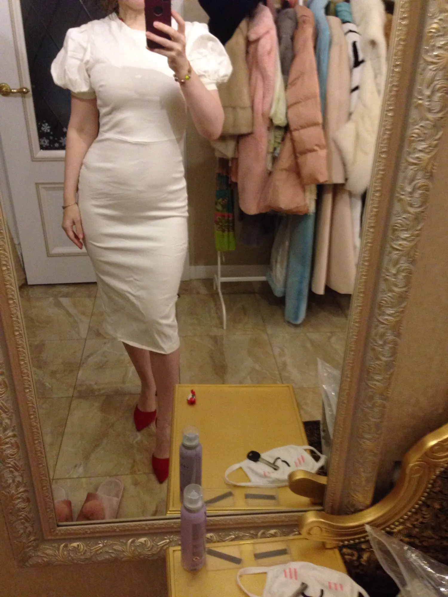 Cool dress! The village is like a glove, my parameters are 87-67-90, the material is pleasant, looks expensive. Slightly shines, not much. I wear with a corrective dress of flesh color under the bottom. Very satisfied! Seller, I recommend it.