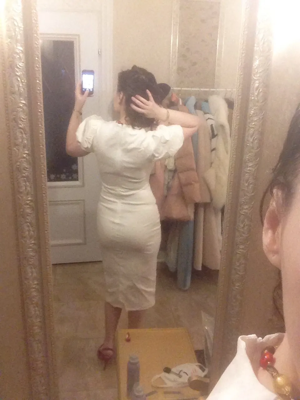 The dress is unreal, very cool! On L Russian 46. Fabric is a good stretch with a light tightening. Elegant style, as they say: both in the Pir, in the world, and in the office. Recommend!
