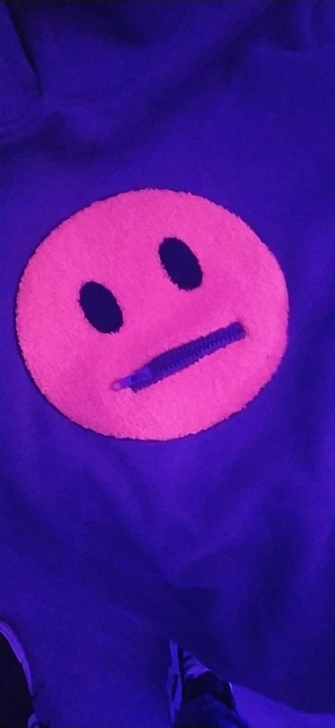 Really qualitative material, Cotton X polyester very soft. The smiley in the center is pleasant to the touch. The mouth is a mini pocket but there is no pocket on the sleeve.