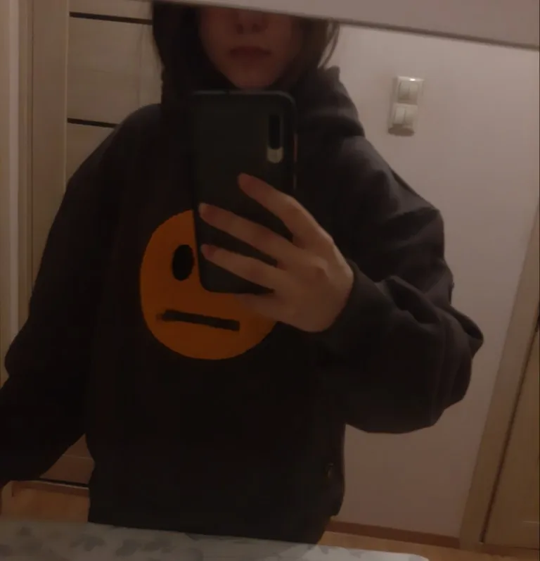 Доставка и упаковка: Доставка заняла около месяца, упаковка целая, чистая, все в порядке. Товар: Худи просто космос, качество шикарное, ниток торчащих нет, швы ровные, запах приятный, пахнет новой вещью. Когда первый раз только увидел худи на сайте, я можно сказать влюбился. Но моего размера нет, я обычно ношу S-ку. Долго думал, стоит ли заказывать, боялся что будет слишком большая, в итоге решил заказать M-ку. Мой рост 170+, вес 55+. Теперь это моя любимая худи, капюшон огромный, я люблю такие капюшоны, они для меня как панцирь или кокон. Продавец положил подарок, в виде маленькой панды, а так же инструкция по стирке, мелочь а приятно. Худи стоит своих денег, рекомендую к заказу. Благодарю продавца за качественный товар. Ps. Карман на смайлике маленький, для мелочи какой нибудь или ключей, смартфоны лопаты туда не залезут. И карман на рукаве, это просто украшение.