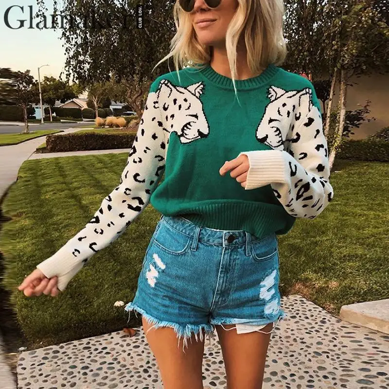 Snow Leopard Contrast Arm Sweater JKP3899