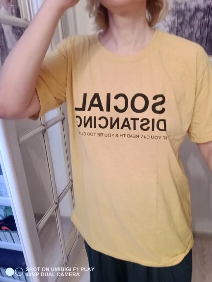 I wear s/m, height 168, weight 65. I took more reviews and regretted-before that I took a green L and it looks better-the collar on a large T-shirt gives out that the size is large. T-shirt is high and the color is green and yellow beautiful in reality. Yellow closer to noble mustard. I recommend, but take no more than one larger size.