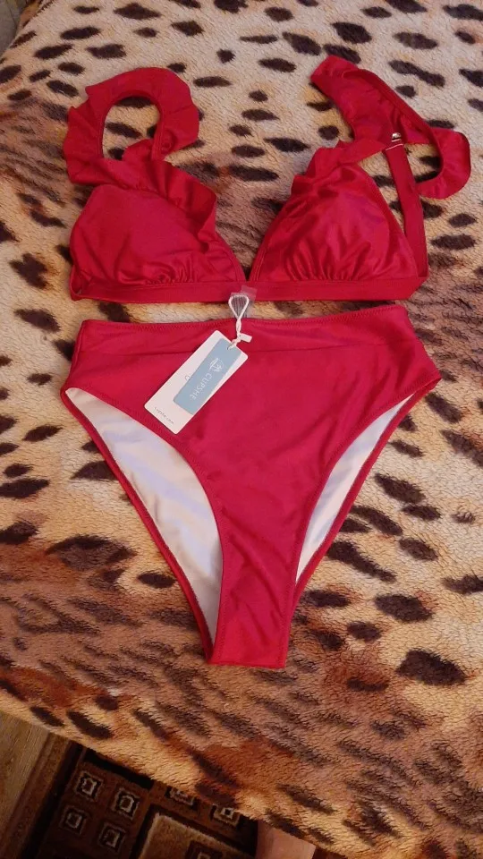 Home / Fashion / Swimsuit / Solid Red Green Ruffled High-Waisted Bikini Sets Swimsuit Two Pieces
