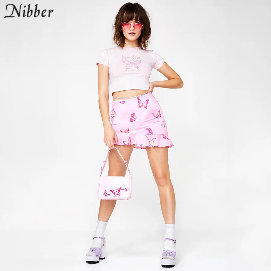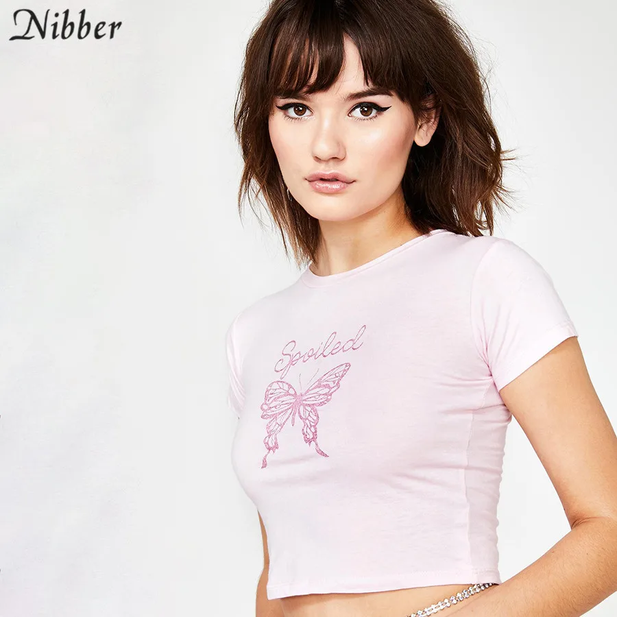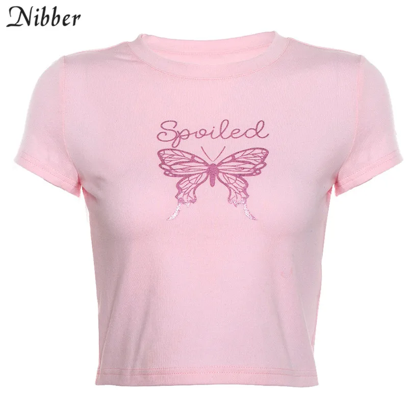 Spoiled Butterfly Pink T Shirt Street Casual Slim Short Sleeve JKP3839