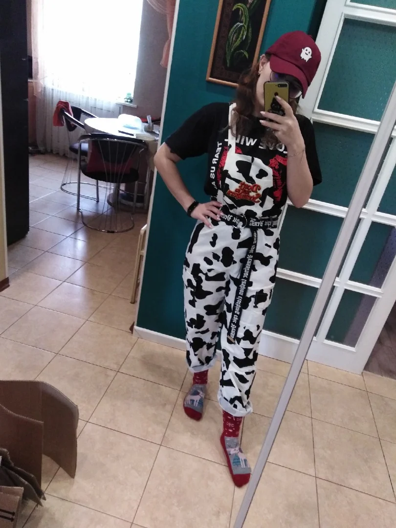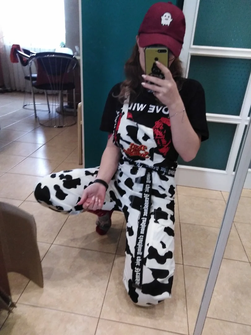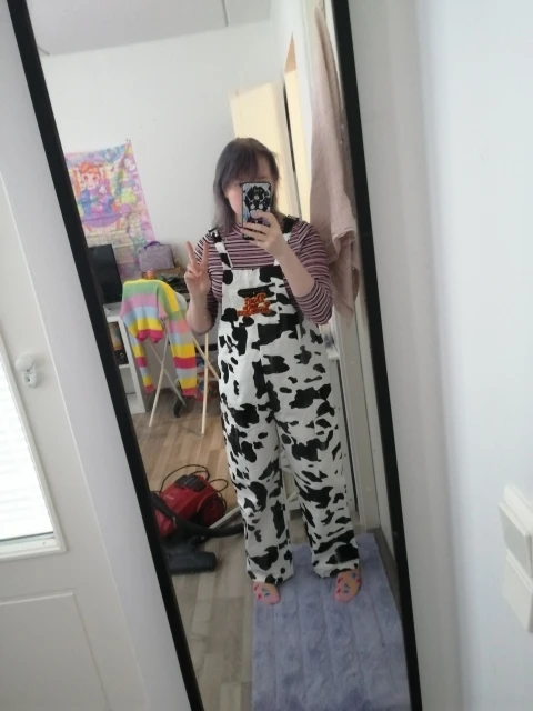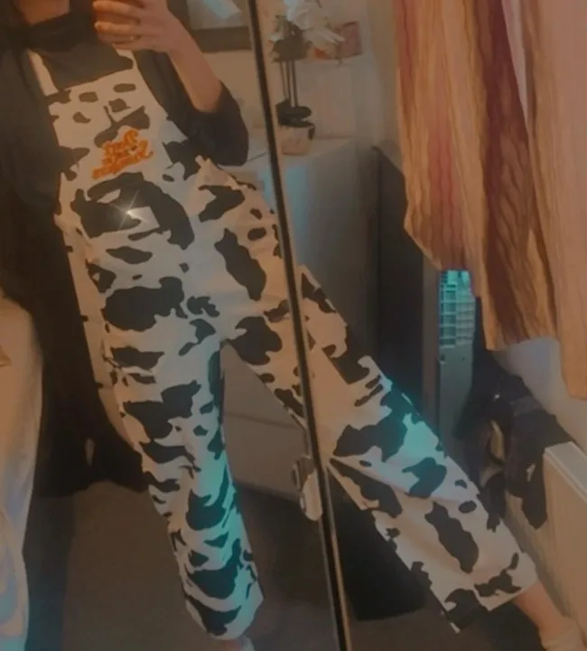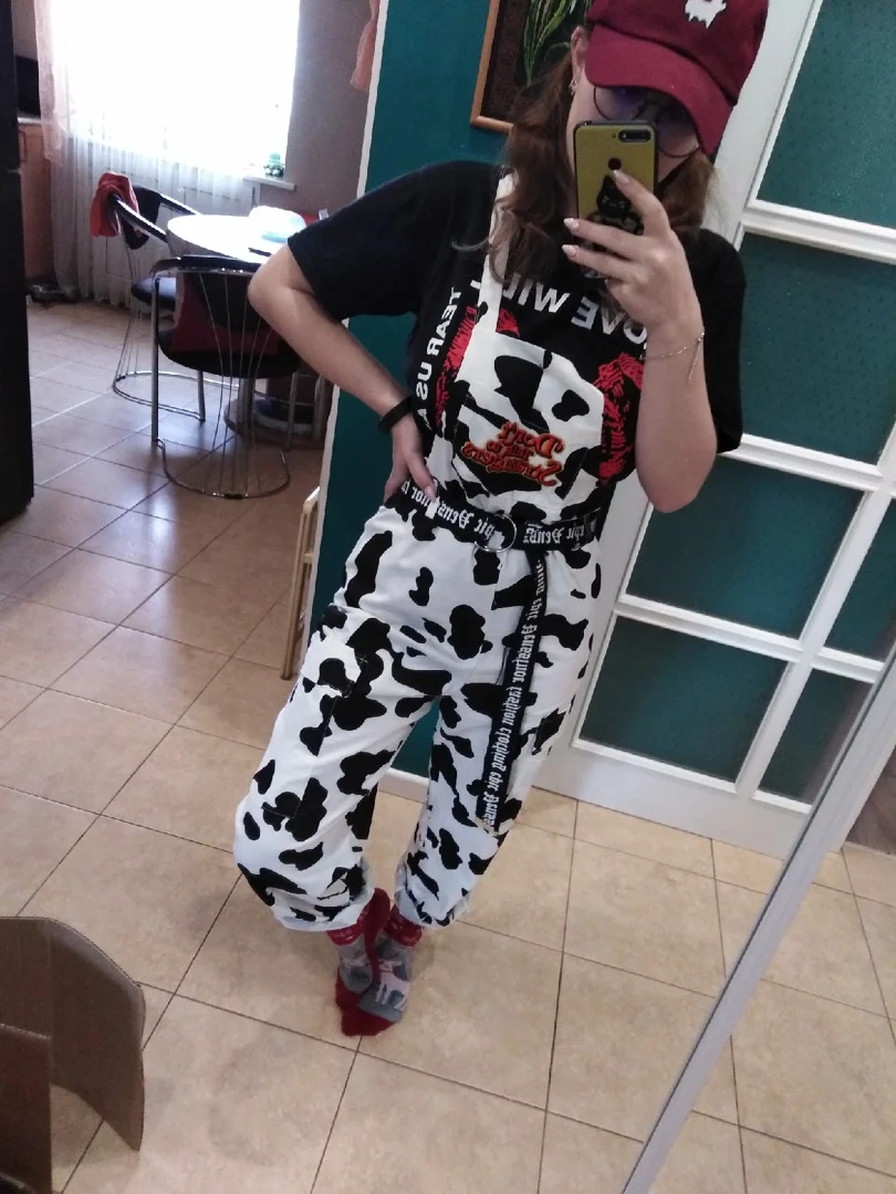 Home / Fashion / Jumpsuit / Street Casual Plaid Overalls Jumpsuit Cow Print JKP4632