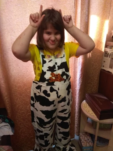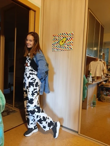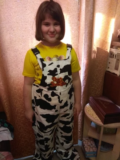 Пришло быстро!!!!! Все, как в описании. Дочь пищит от восторга Ткань х/б плотная, швы хорошие, запаха нет. Рост 156, вес 40 кг. Ростовка как раз, но она длинноногая. А вот в талии- ещё одна влезет. Хотели немного ушить от бедра к талии,а потом поняли, что нет замков. Не получится одеть.