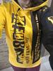 Great sweatshirt! Sewn qualitatively, bright yellow-orange color, synthetics, but pleasant to the body. On a guy with a height of 176 cm, a weight of 73 kg ideally approached the size of 2XL (advised by the store), not an oversize, but freely. Thank you.