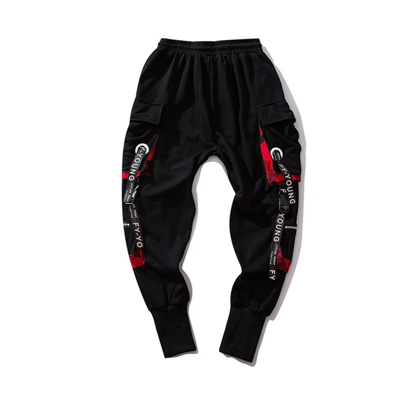 Street Fashion Letter Ribbons Pocket Color Casual Cargo Pants Streetwear Urban Outfitter JKP3808