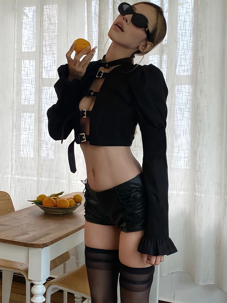 Turn heads with this street fashion women’s hip-hop crop jacket, designed with bold metal buckle details, statement flared sleeves, and a trendy cropped, navel-exposed fit. Perfect for urban streetwear, club outfits, Y2K fashion, and hip-hop style looks, this jacket adds instant edge to any outfit. Style it with cargo pants, mini skirts, or denim for a confident, fashion-forward vibe.