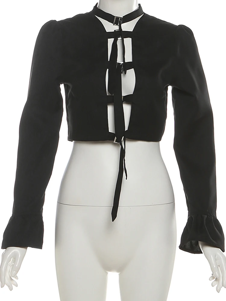 Street Fashion Women Hip-Hop Crop Jacket with Metal Buckle And Flared Sleeves JKP7438