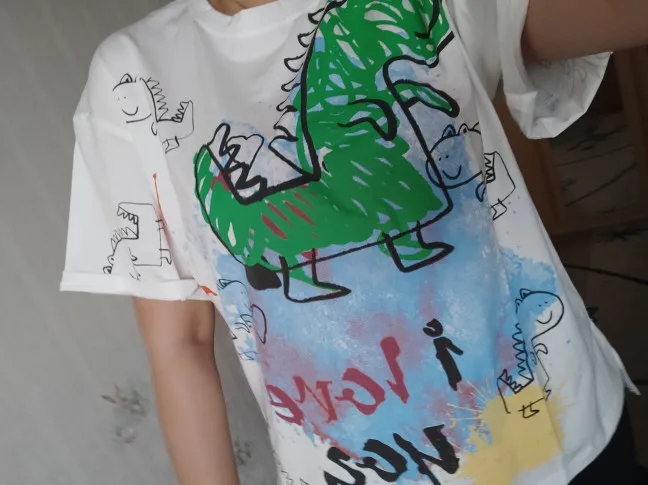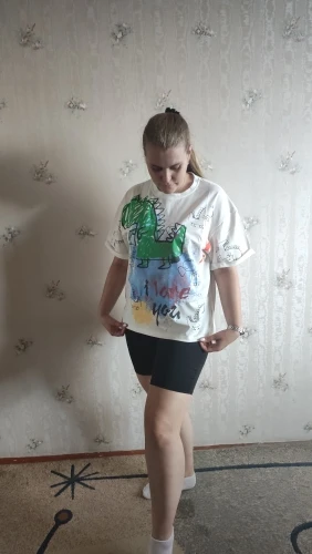 Cool T-shirt, the girl is delighted, excellent oversize. Pleasant material to the touch.