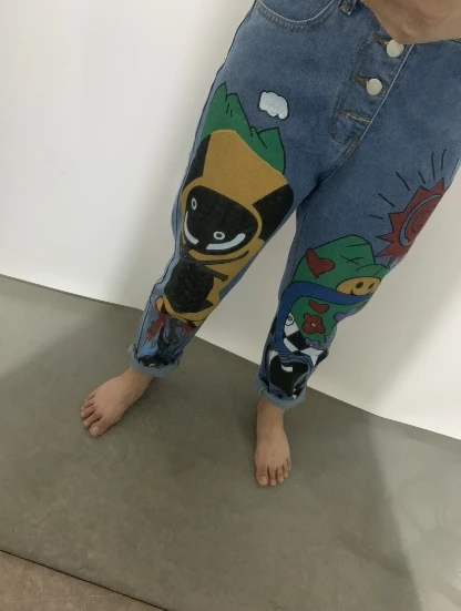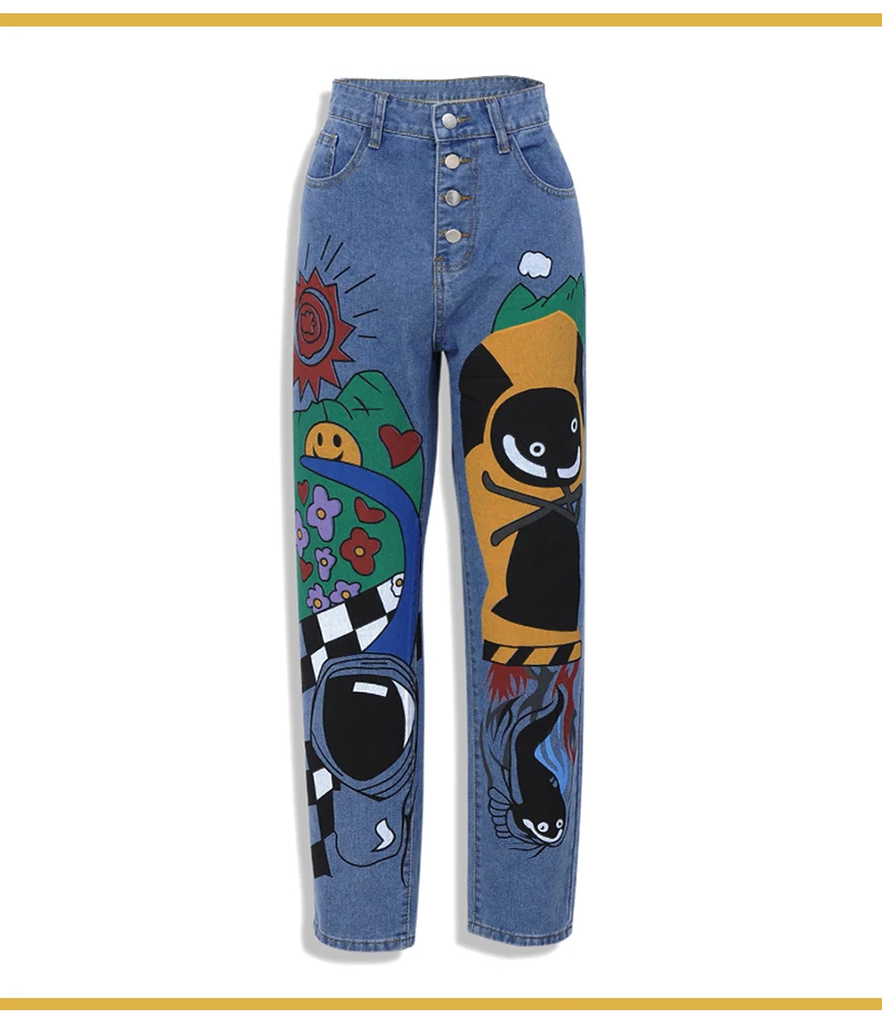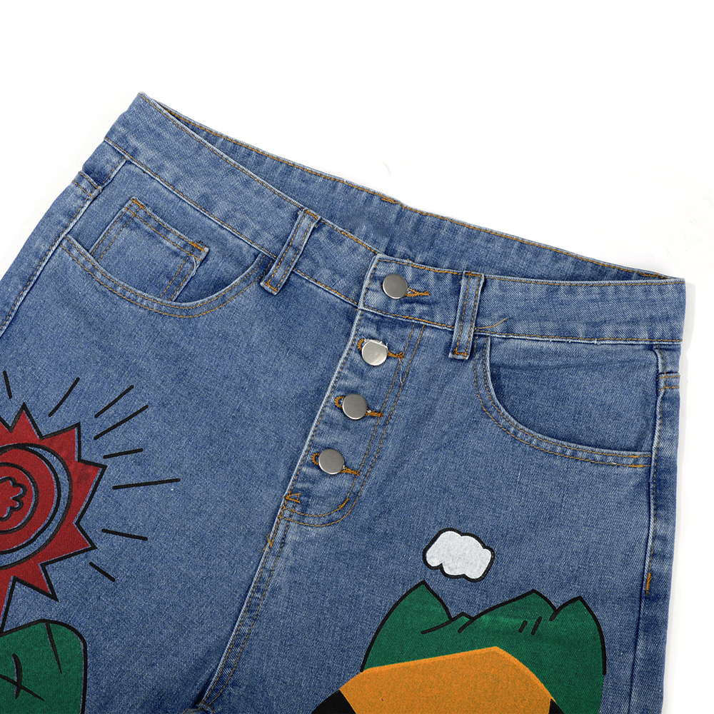 Streetwear Denim Jeans Cartoon Printed