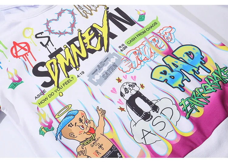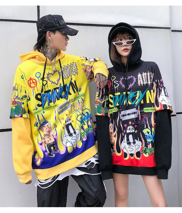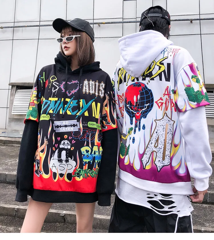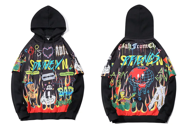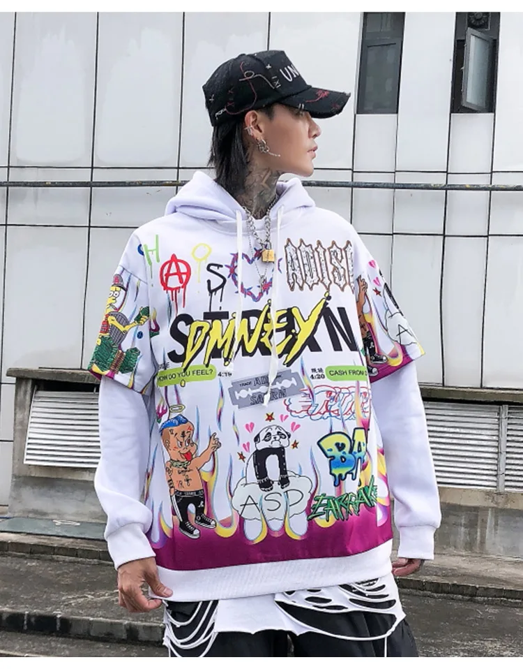Streetwear Hoodies Hip Hop Full Cartoon Letter Print