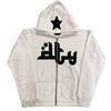 Streetwear Men Retro Zip Up 4TUNE Star Letter Print Hoodie Long Sleeve JKP6088