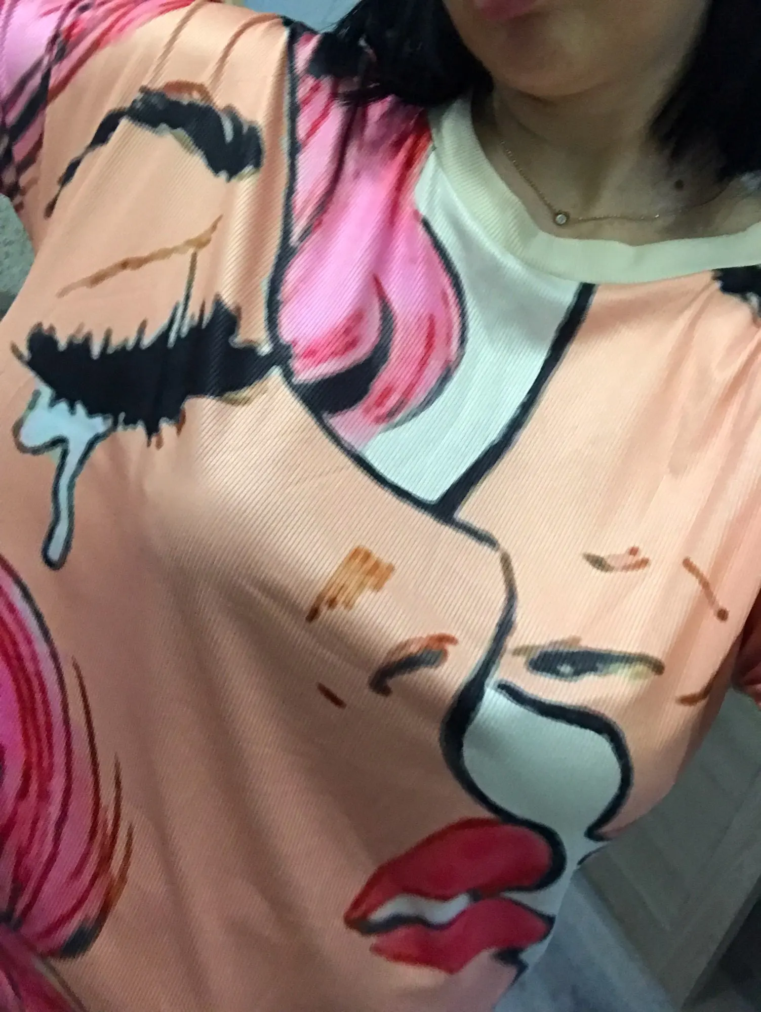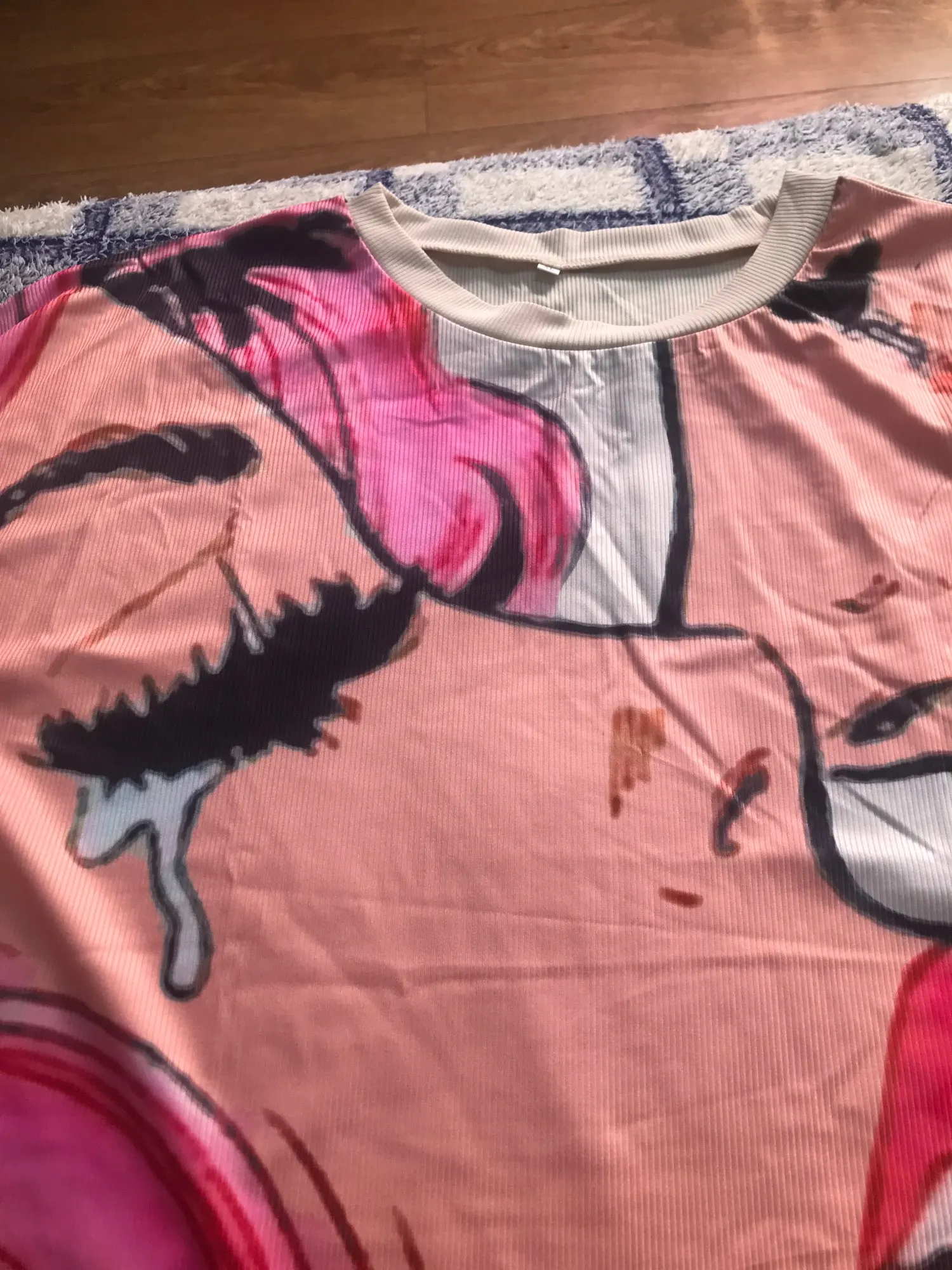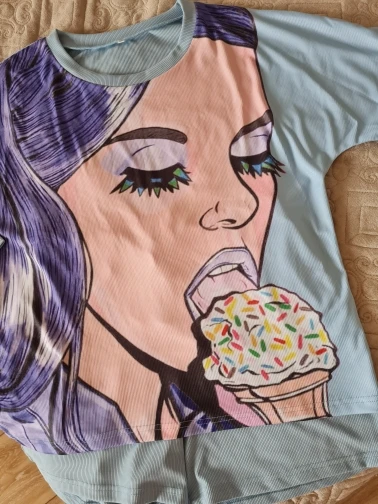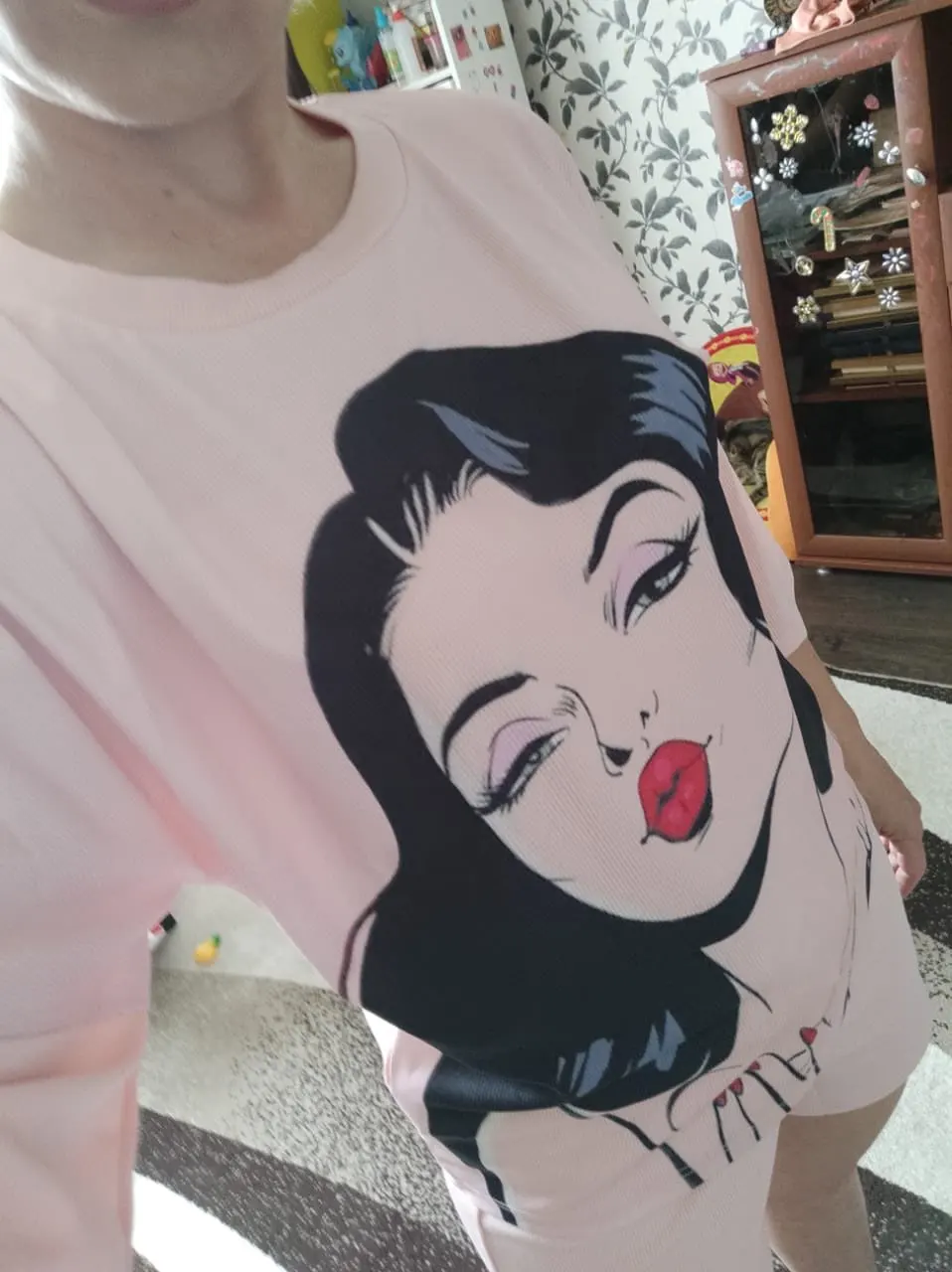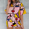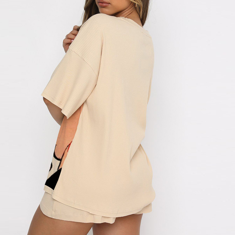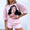 Streetwear Outfit Harajuku Women Cartoon Shirt Short Sleeve Chic Print Plus Sweatpants Set JKP4728