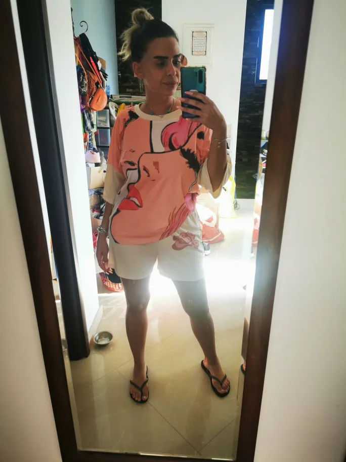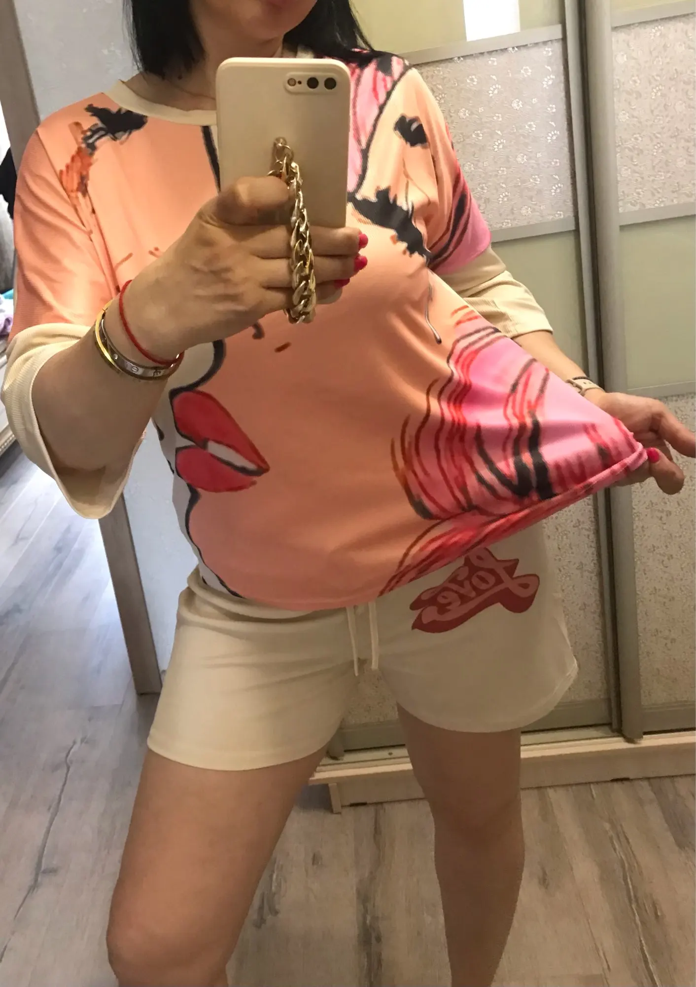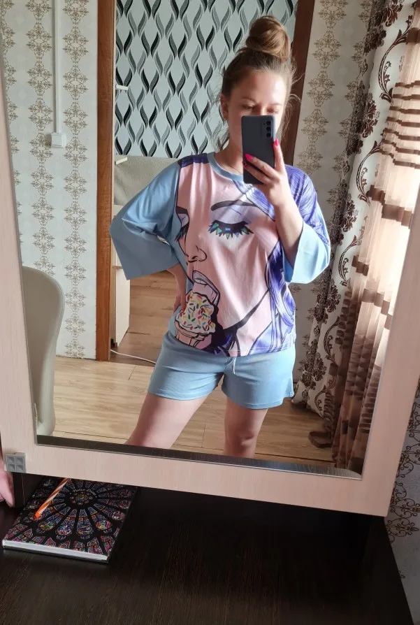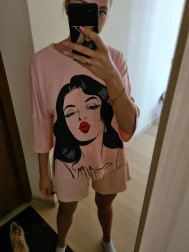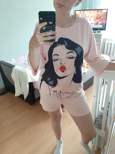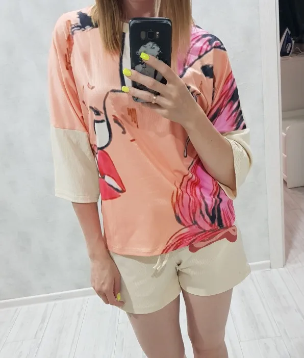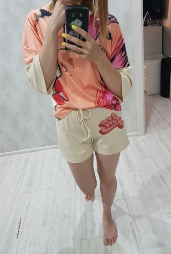 Костюм чудовий,поки жарко то ношу тільки шорти,вони досить вільно сидять. Раджу брати на розмір більший свого щоб було вільніше на тілі. Єдине я думала що рукава будуть прямі а вони розширяються трішки. Кофта підійде на більш прохолодну погоду. А так мені і тканина і фасон сподобались.