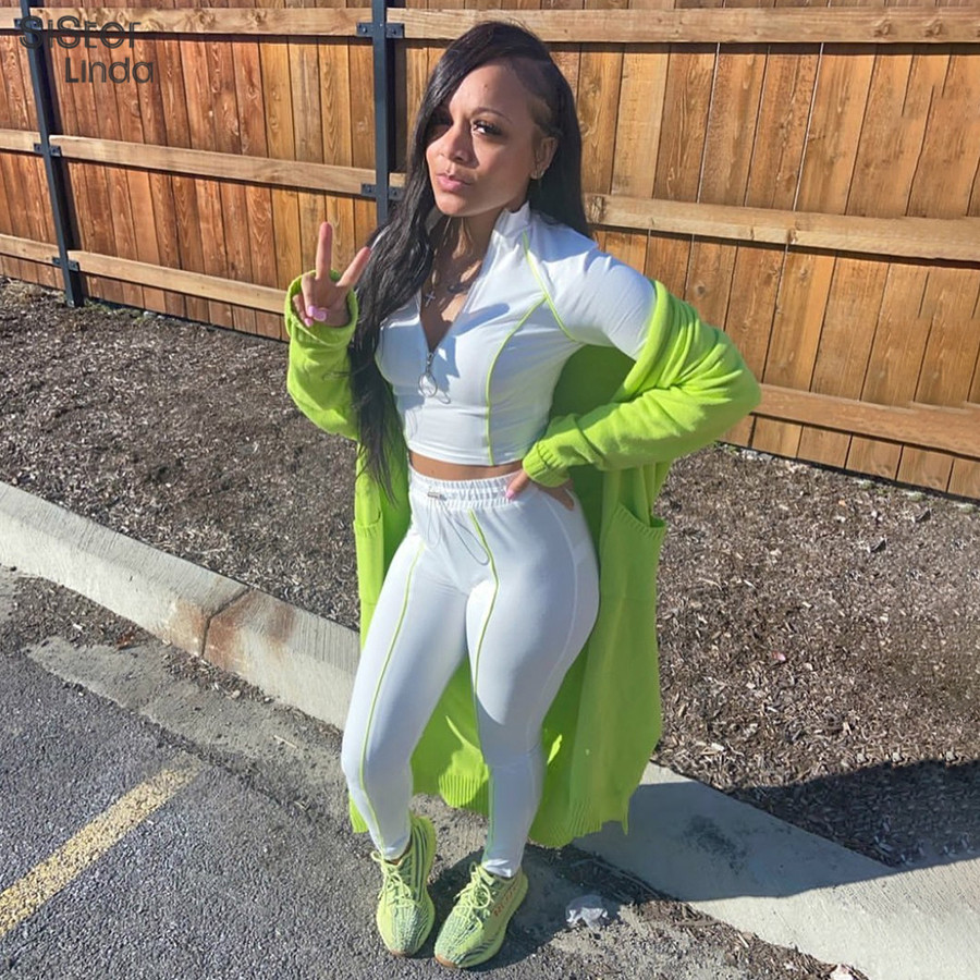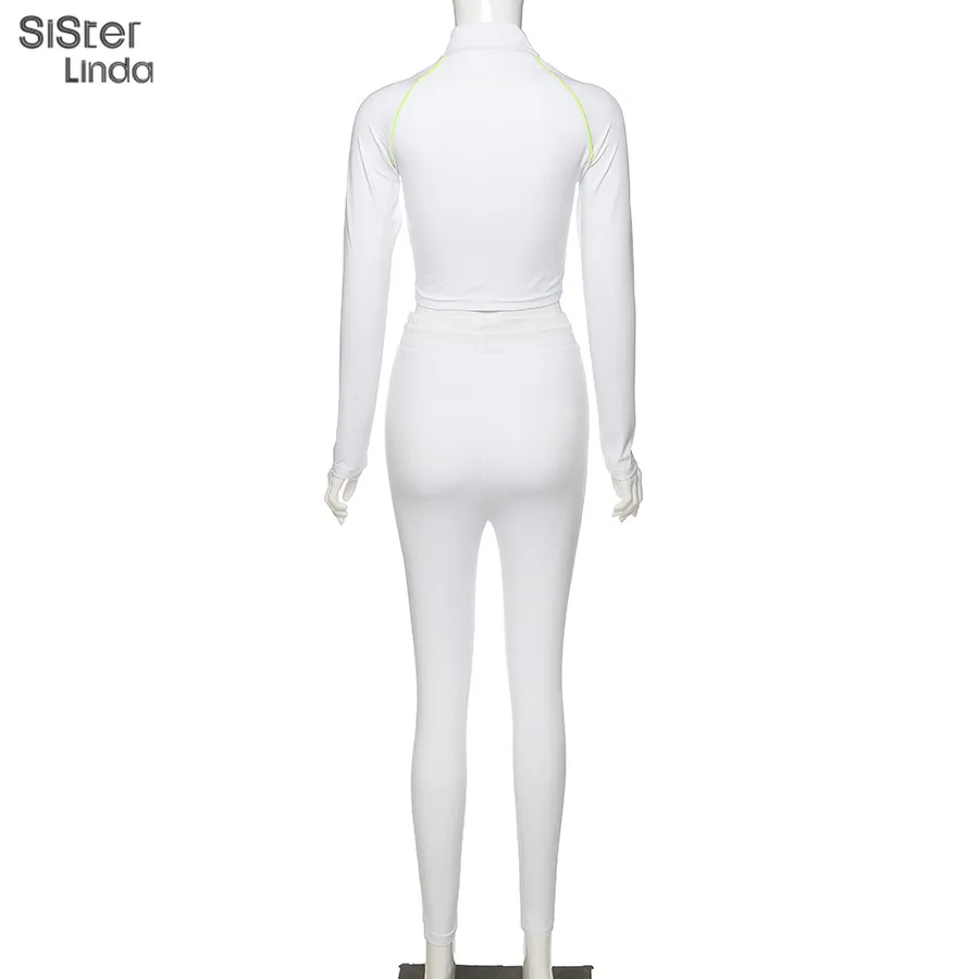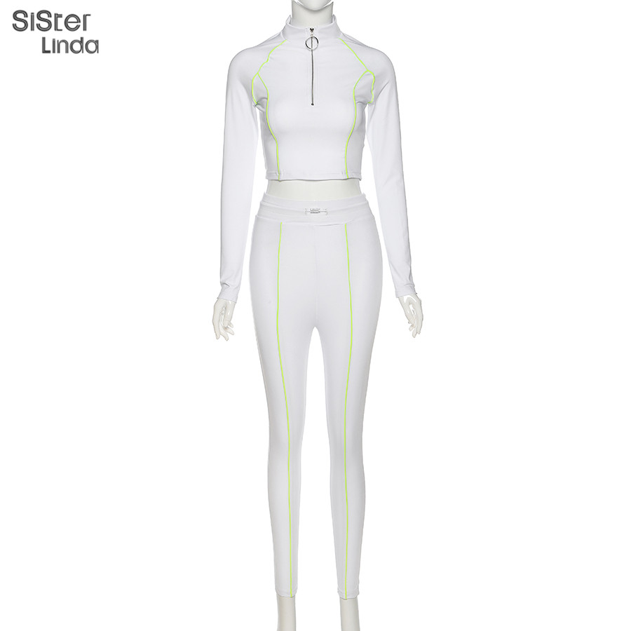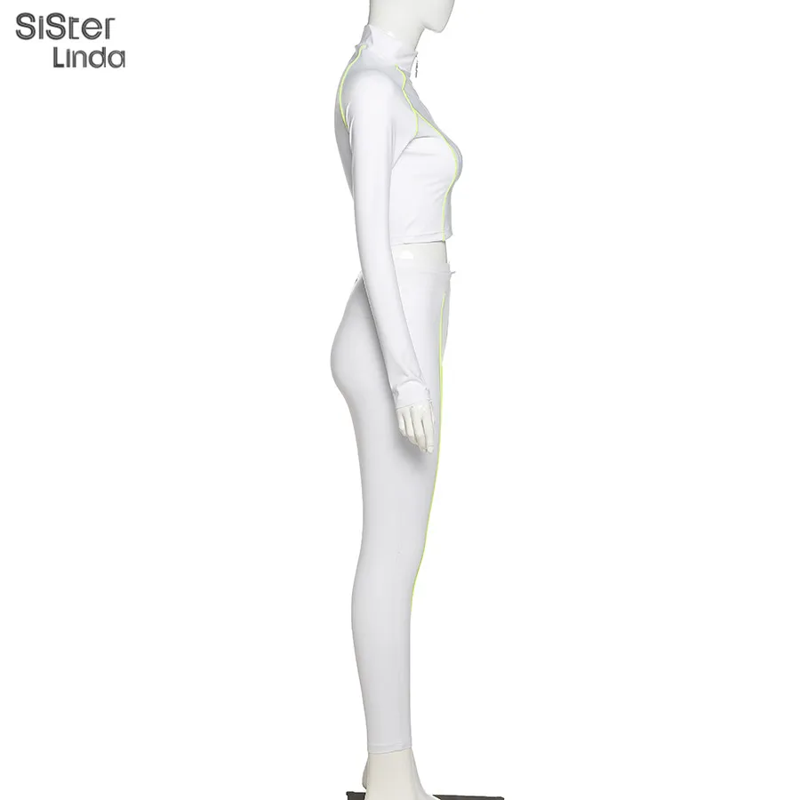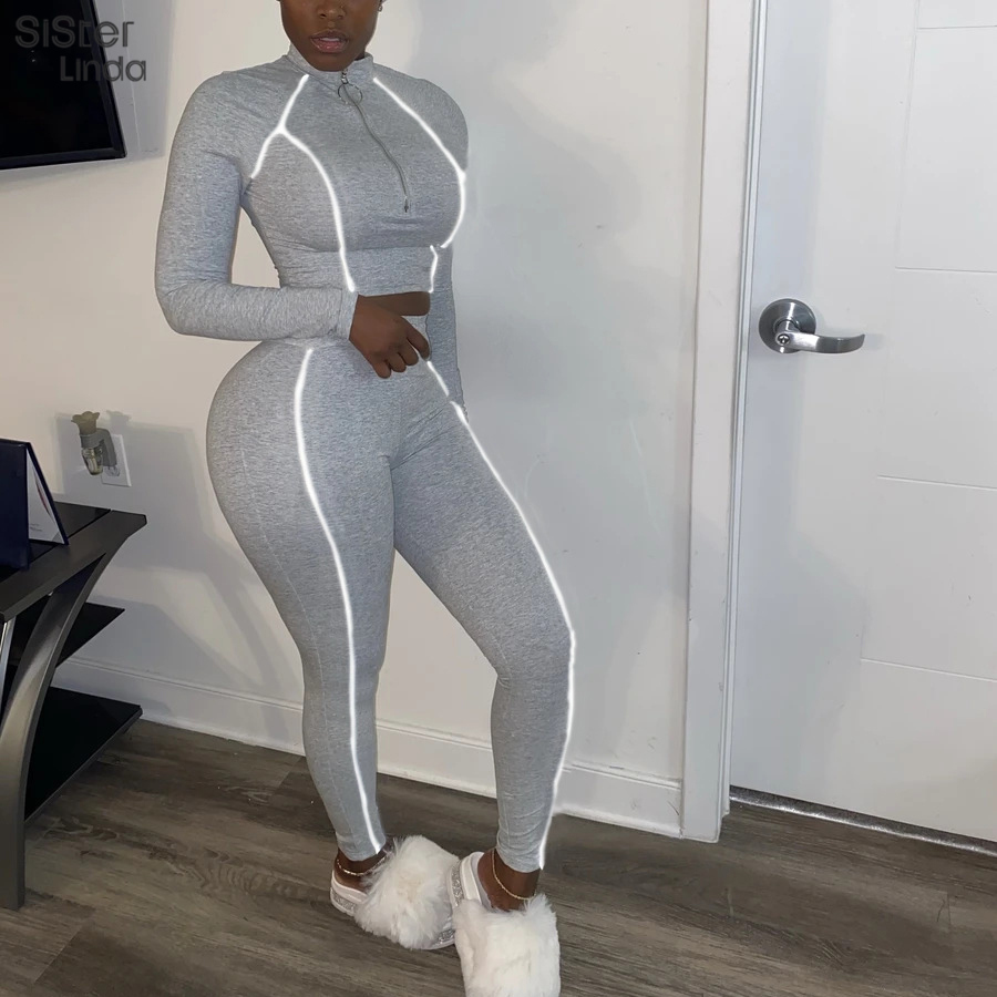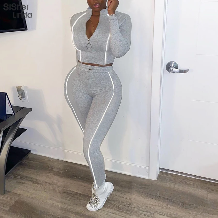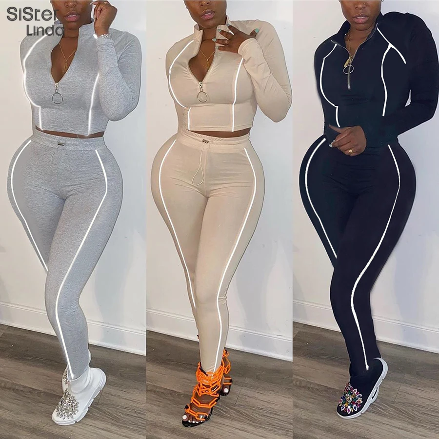 Streetwear Outfits Reflective Stripes Zipper Top And Leggings
